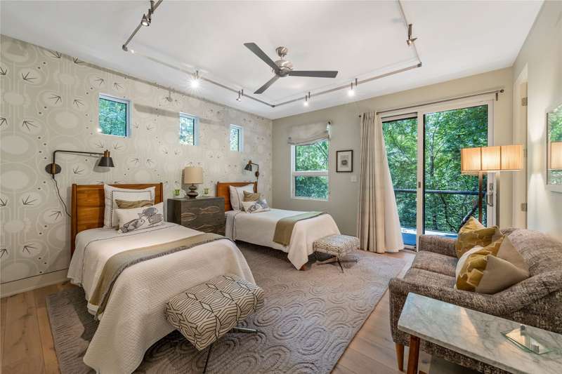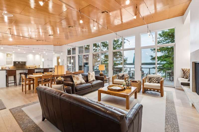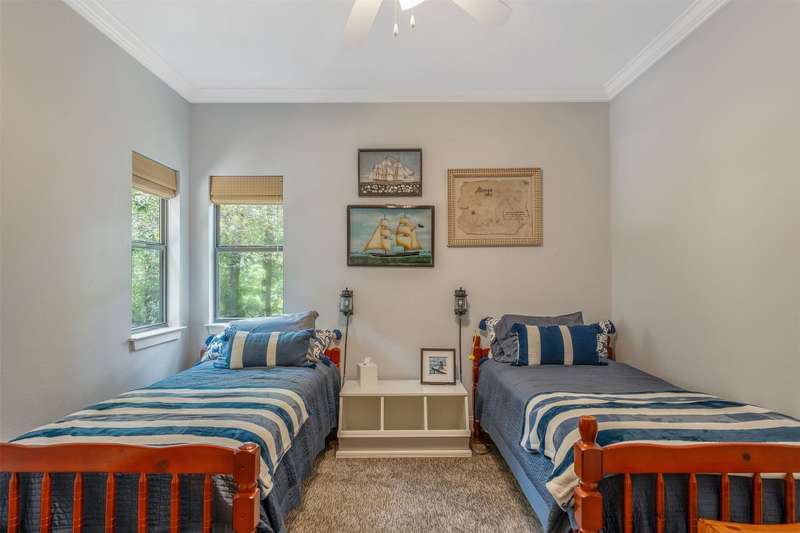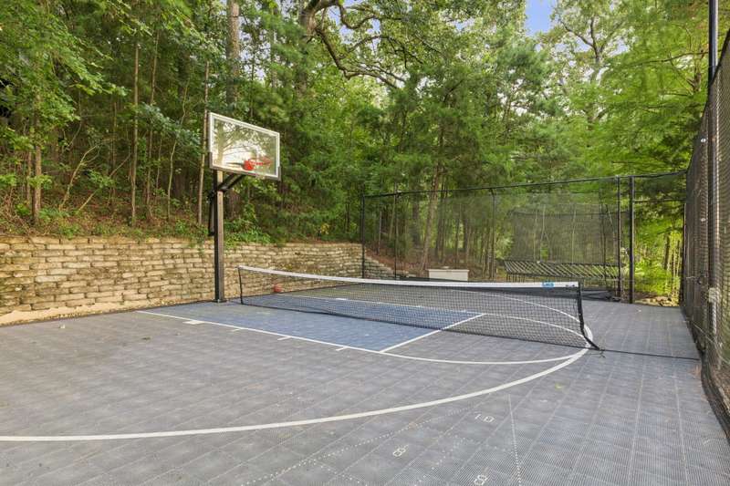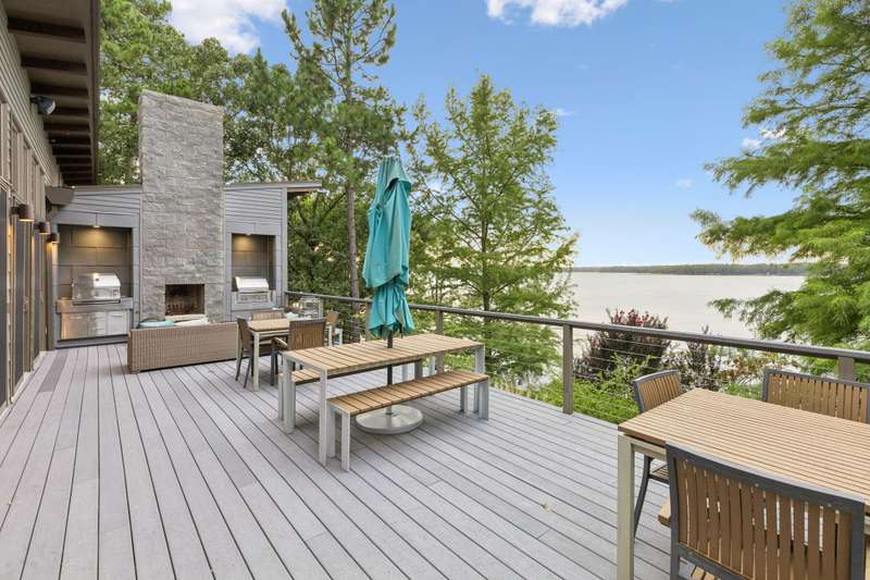 LARGE ESTATE on beautiful Lake Cypress Springs nestled among the trees with over 20 acres and a beautiful guest house. The gated entrance leads you to one of the largest lots on the lake with a contemporary custom home designed by the well-known architectural firm of Barry Bull Ballas. The expertly designed main home features 4 bedrooms and 5.5 baths, with an exterior combination of stone, zinc, and hardy plank, producing a timeless home unlike any other lake house in the area. Nestled among the towering trees and perfectly oriented on the land to maximize the views of the lake with over 450 ft of lake frontage, this home exudes sophistication from the minute you walk along the expertly landscaped entrance to the time you walk out to the deck ideal for entertaining, including a fireplace, pizza oven, and grill. The property boasts an array of recreational options. Sport court ideal for pickleball, basketball, foursquare, shuffleboard and badminton, tetherball, spa, etc. Multiple boat docks, including an automatic lift and cover for a ski boat and pontoon boat, an additional slip for a sailboat and a floating dock for swimming and additional watercraft. There is a beautifully designed fire pit that overlooks the lake and beach area. The expertly landscaped and sprinklered grounds surround the home and lakefront with multiple areas to entertain. The List Price includes the following: 2011 Sun Tracker Pontoon Boat w. a 150 Mercury 4-stock engine, Kawasaki UTV 4.4 Mule, two 2021 Sea-Doo Jet Skis, three kayaks, and a paddleboard. A beautifully designed guest house is situated on 2.15 acres with an expansive deck and expert landscaping, and an entertaining space of its own. This three-bedroom, two-bath home is the ideal guest house or second residence for family or guests. This sophisticated, contemporary lake house compound is ready to enjoy and includes countless recreational options in this uniquely private setting on beautiful Lake Cypress Springs.