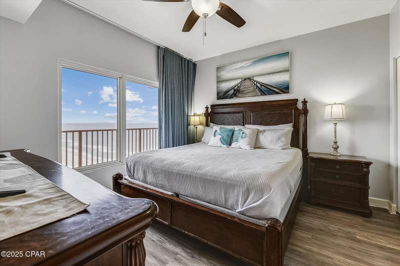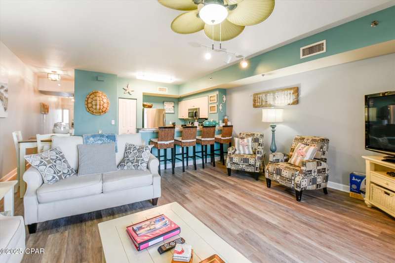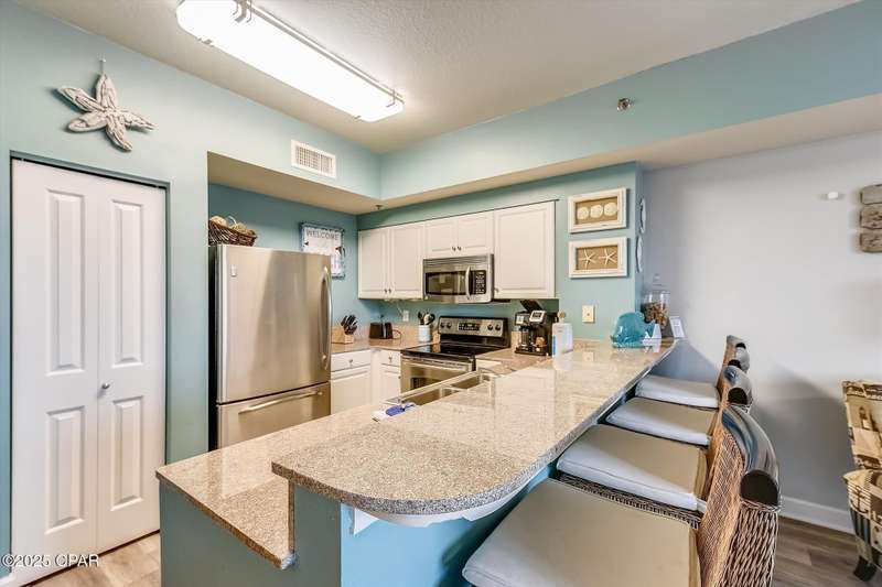 50k of RENTAL INCOME!! PRICE IMPROVEMENT! BRING OFFERS> Gulf-Front Penthouse at Shores of Panama - Vacation Ready and Investment Perfect! Most popular and sought after N-floor plan!!!Welcome to your dream getaway at the Shores of Panama, one of the most sought-after resorts on the Gulf Coast! This stunning penthouse condo offers breathtaking views of the Gulf of America and is the perfect blend of style, comfort, and investment potential. Whether you're looking for a luxurious vacation retreat or a high-performing rental property, this unit checks all the boxes.Tastefully decorated and move-in ready, the condo sits atop a family-friendly resort known for its 52 beautifully appointed vacation rentals and unbeatable amenities. This unit will sleep up to 6 comfortably. The bunk room has a full- size bed on the bottom bunk. Enjoy the lagoon-style pool, on-site tiki bar with food and drinks, direct beach access, water sports rentals, fitness center, covered parking garage, and exceptional on-site support--all designed to make every stay unforgettable.This unit also includes its own dedicated parking space, a valuable bonus in this popular complex.Don't miss your chance to own a slice of paradise. Schedule your private showing today and make this penthouse your next great investment--or your personal escape on the Gulf of America!