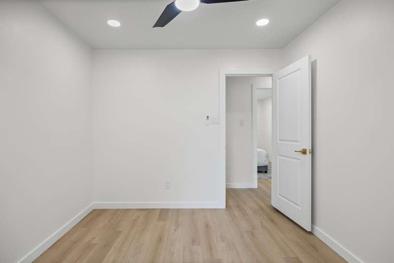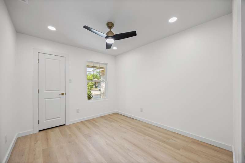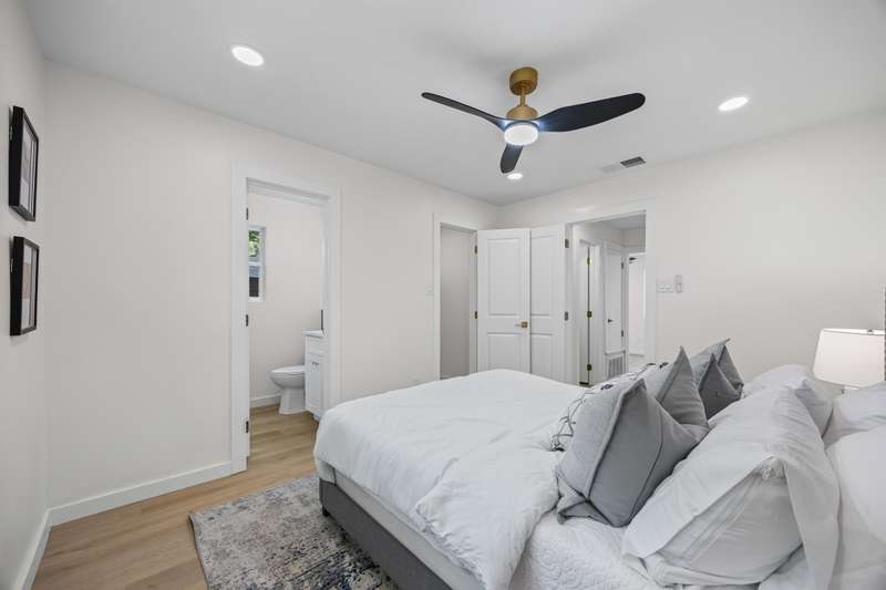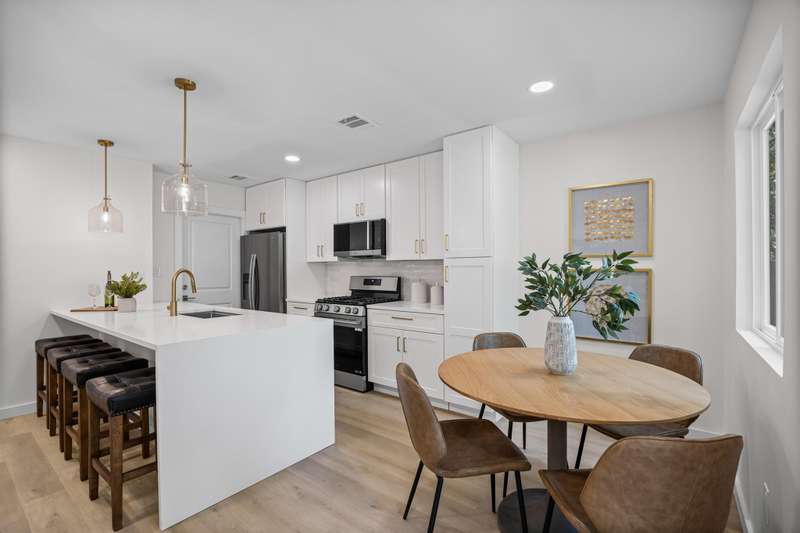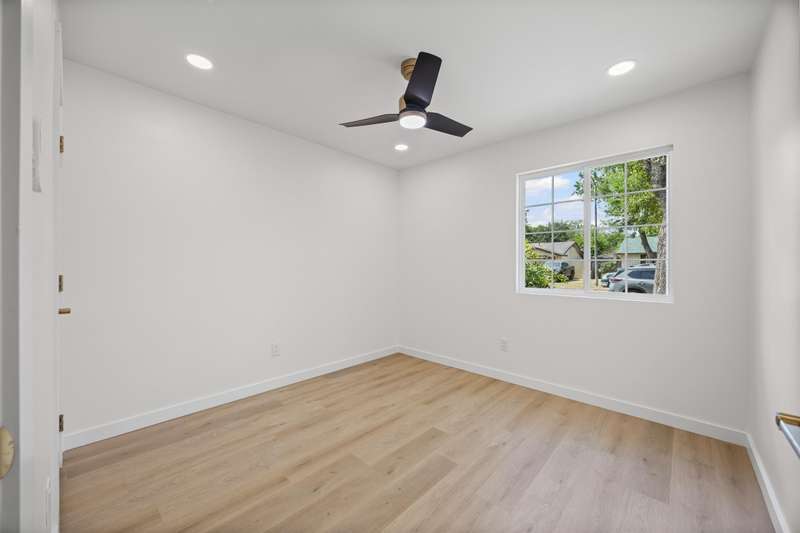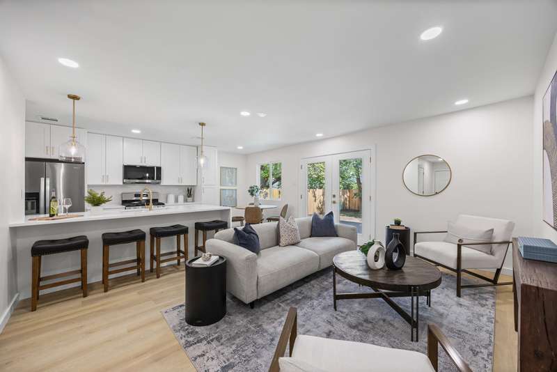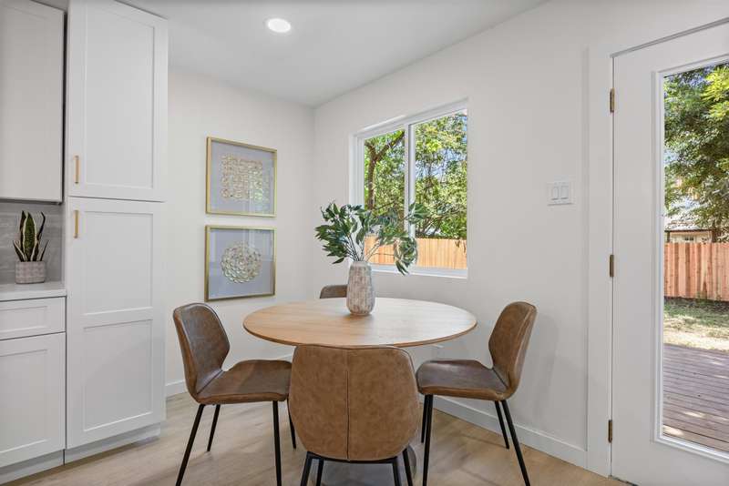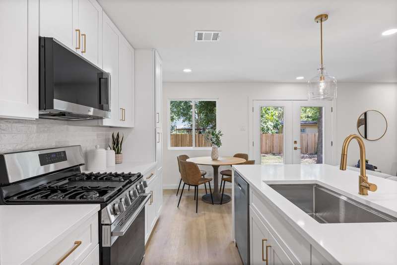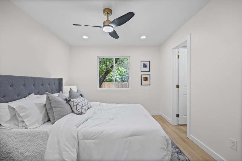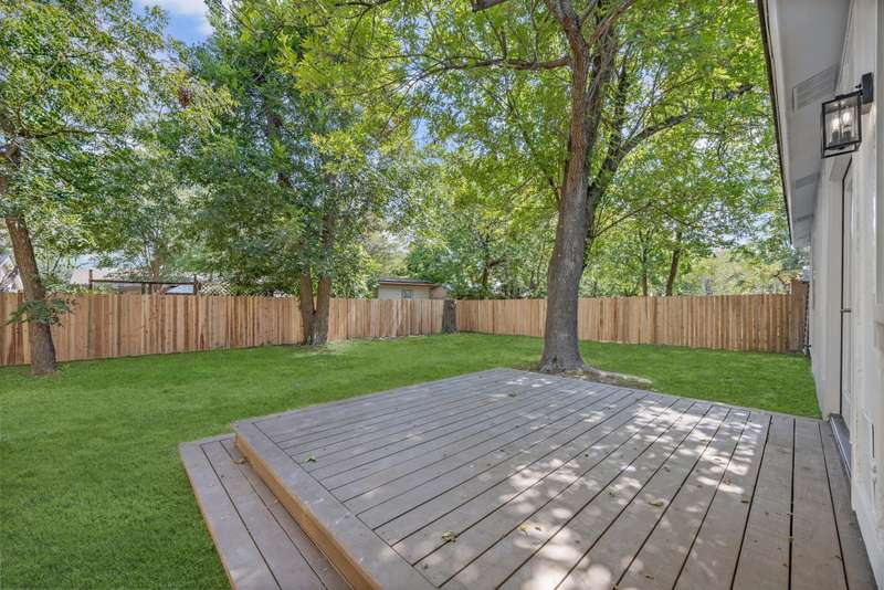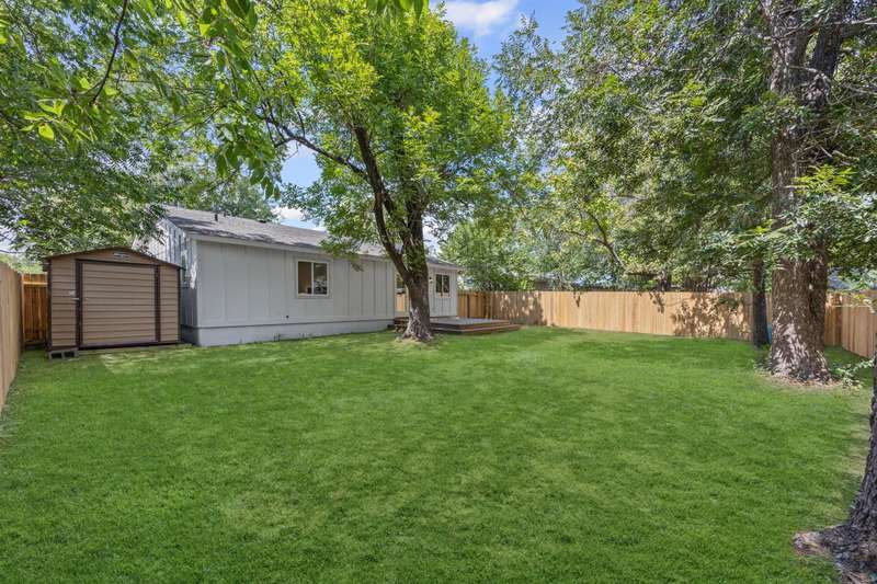 This fully remodeled home has been thoughtfully updated from top to bottom for modern comfort and style. Every surface feels fresh with smooth level-5 wall texture and designer paint, and the light-filled layout highlights a beautifully redone kitchen featuring quartz countertops, sleek cabinetry, stylish hardware, and all-new stainless appliances. Both bathrooms have been completely updated with contemporary tile, new vanities, and crisp finishes. A new roof, windows, water heater, interior doors, trim, and lighting fixtures complete the transformation. Outside, a spacious backyard with a brand-new deck and mature shade trees invites easy entertaining or quiet relaxation, while a one-car garage adds convenience and storage. Combining the character of an established neighborhood with the confidence of a thorough 2025 renovation, this home is move-in ready and designed for years of low-maintenance living.