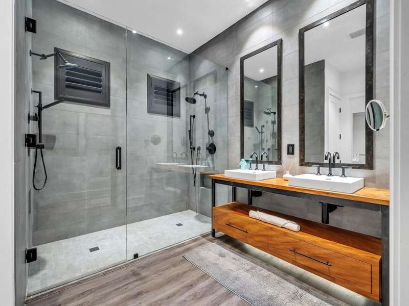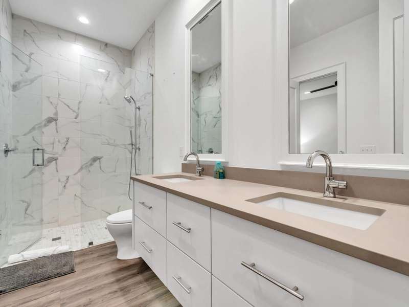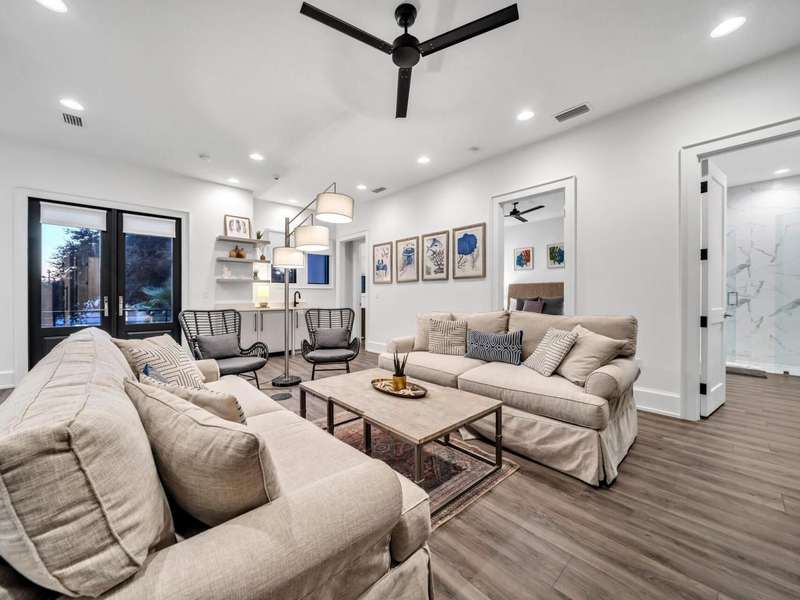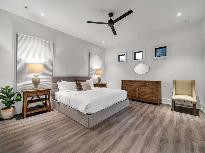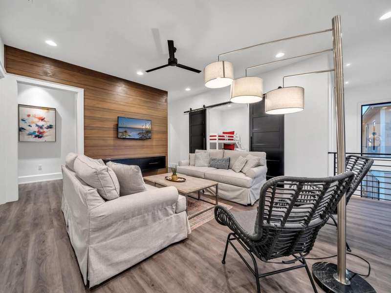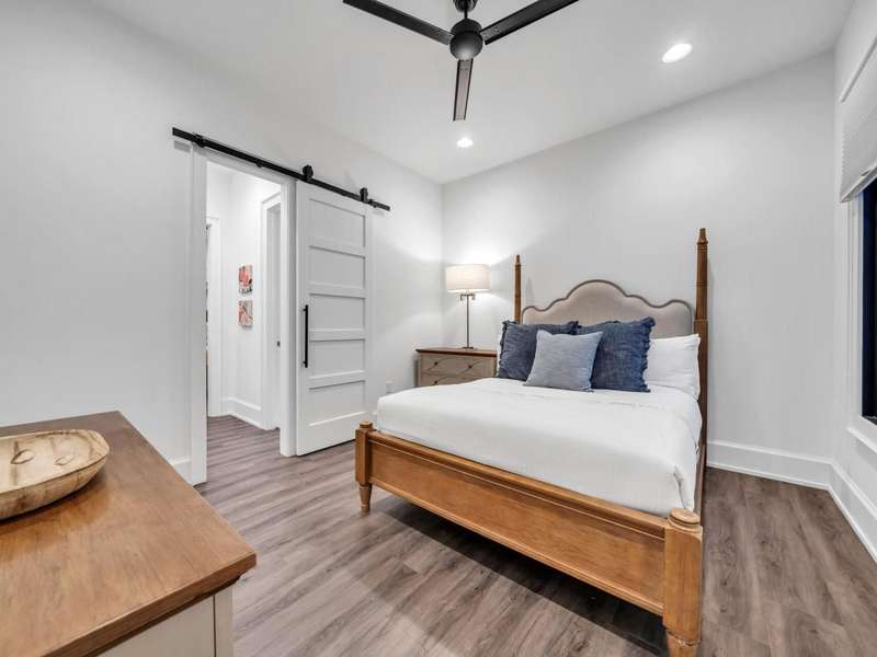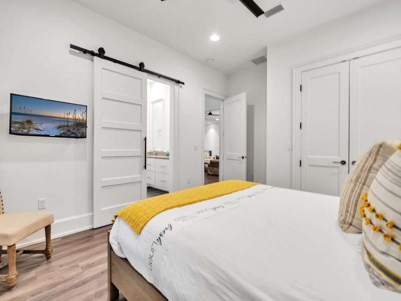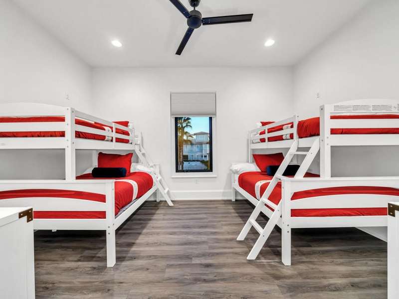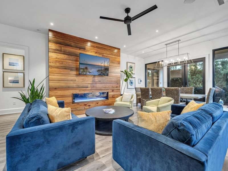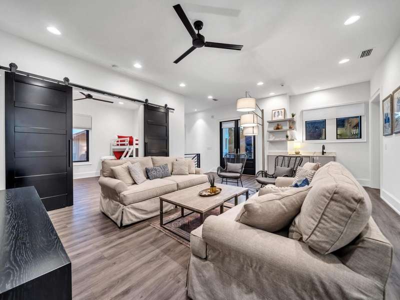 PRICE DECREASE!!!Experience contemporary coastal chic in this custom-built home, located in the private gated community of Emerald Waters Village. Just a short walk from restaurants, shops, and exclusive ''Deeded Private Beach Access,'' the home also offers access to two community pools and has projected rental income exceeding $180,000?making it ideal for investors seeking strong returns.Step inside to stunning floor-to-ceiling windows overlooking the private saltwater pool and a reclaimed wood accent wall featuring a sleek Heat & Glo gas fireplace.The outdoor courtyard, with its heated pool, invites relaxation, while the gourmet kitchen impresses with Thermador appliances, quartz waterfall island, and custom under-cabinet lighting. The first-floor primary suite boasts a spa-like bathroom with a zero-entry walk-in shower and custom dual vanity. Upstairs, find a spacious second living area, five bedrooms including a bunk room.This unique, luxury home won't last long perfect as a vacation retreat or investment property!*Golf Cart NOT Included in Sale*