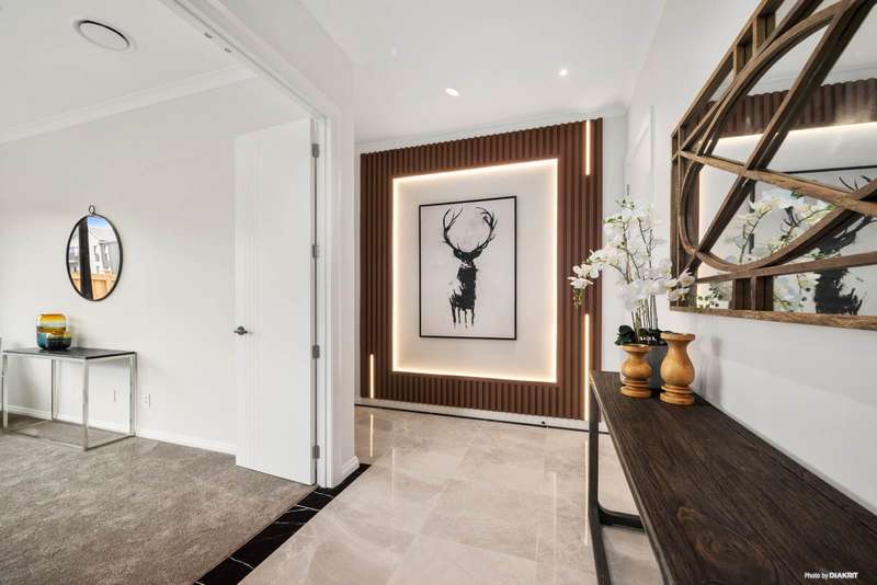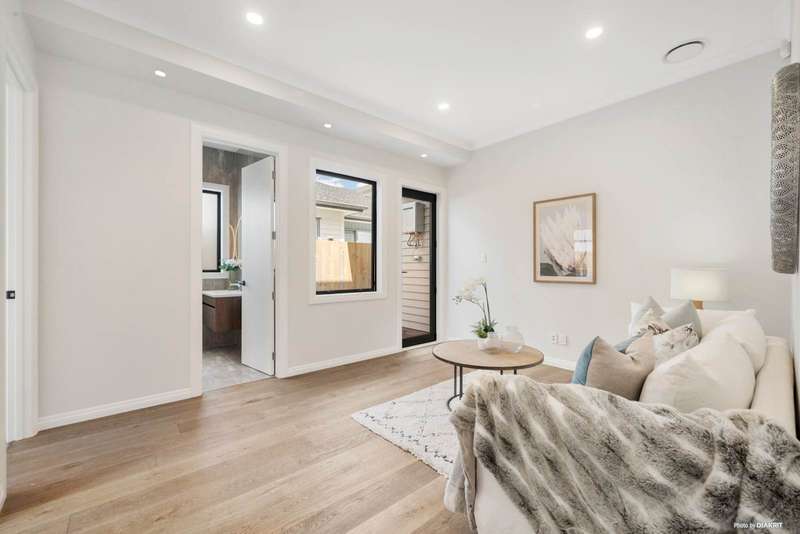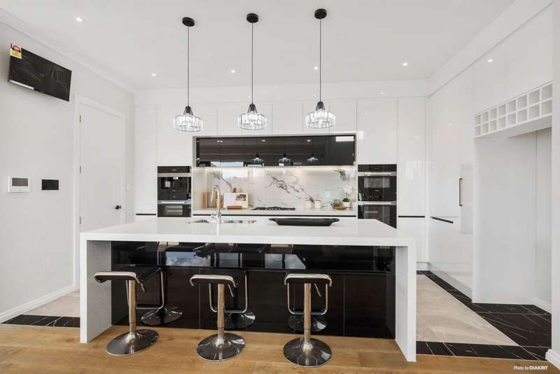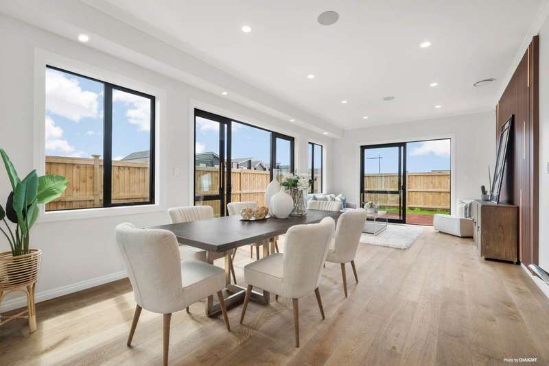 Positioned on a quiet corner in a peaceful street, this expansive residence offers the ideal balance of style, space, and functionality. Set on a 484 sqm section with an impressive 360 sqm (approx.) floor area, this home is designed for multi-generational living and effortless entertaining. Step inside to a grand entrance with a striking feature wall that introduces the home’s sense of elegance. A sun-filled formal lounge provides a tranquil retreat or welcoming space for guests. The beautifully appointed kitchen is the heart of the home, featuring a generous island, premium Miele appliances, built-in coffee machine, and ample storage. A full second kitchen offers added convenience—perfect for large families or entertaining. The open-plan living and dining areas connect seamlessly to a private patio, while American oak flooring adds warmth and sophistication. A guest toilet completes the level. Granny potential is a standout feature here, with a self-contained wing including two bedrooms, a bathroom, and a living area—ideal for extended family, guests, or a home office. Upstairs, a spacious sitting area with high ceilings adds a sense of grandeur. Two master suites offer private luxury, one complete with a freestanding bath, double vanity, and a flexible space for a nursery, study, or creative nook. Two additional bedrooms share a stylish family bathroom. Located close to shops, motorway access, and the Hibiscus Coast bus station, this exceptional home ticks every box. Contact us today to arrange your private viewing or attend our Open Home!