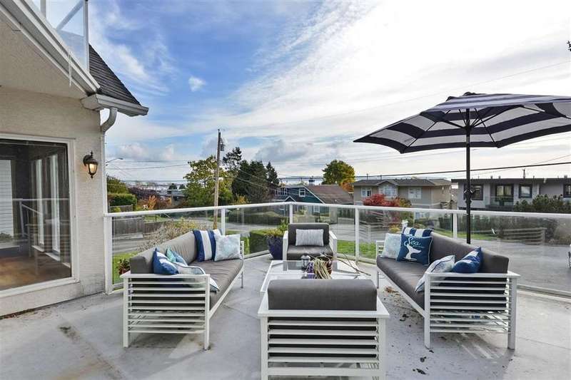 Welcome to a truly exceptional property offering breathtaking panoramic ocean views—a rare opportunity to build your dream home or develop up to 6 units under city zonings.The existing charming residence features three bedrooms on the upper level, including a primary suite with a walk-in closet and a private ocean-view patio. The main floor showcases a bright, open-concept living and dining area with expansive windows and an oversized patio ideal for relaxing or entertaining while soaking in the stunning views.The lower level offers suite potential, providing flexibility for extended family living or generating rental income. Bayridge Elementary and Semi-Secondary catchments, this is an opportunity not to be missed!