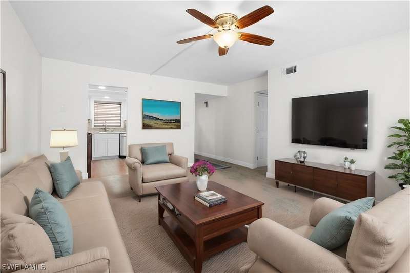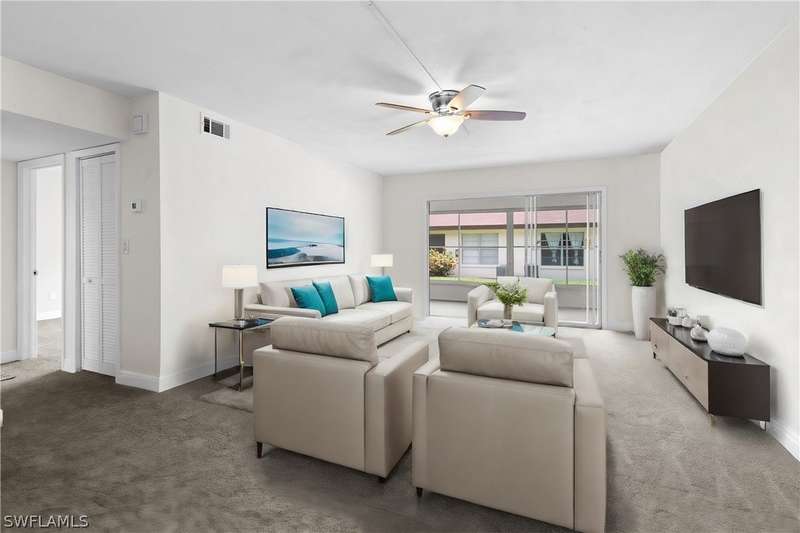 Welcome to your perfectly positioned sanctuary, a charming condo, nestled in the heart of downtown Cape Coral. Designed with simplicity and comfort, this ground-floor unit boasts fresh updates and features a ready-to-enjoy lifestyle the moment you walk through the door. Step inside to discover new flooring that offers a clean and modern look throughout the space. The living area, brightened by natural light from sliding glass doors, opens up to a covered, screened lanai. Imagine sipping your morning coffee in peace or entertaining friends in this delightful unit. Cooking enthusiasts will adore the updated kitchen equipped with new appliances and plenty of storage, making meal prep a breeze. The remodeled bathroom adds a touch of elegance and functionality, enhanced by a practical tankless water heater. This condo features two cozy bedrooms, providing a serene retreat for rest and relaxation. Additionally, the low homeowners association dues ensure that this home is as economical as it is lovely. Located just a stone's throw from the vibrant downtown area, you're never far from the eclectic shops, delightful eateries, and leisure activities that Cape Coral is famous for. Whether you're looking for a seasonal getaway, a downsize without compromise, or a second home with all the perks of Florida living, this property checks the boxes. With its combination of modern amenities, prime location, and affordability, this condo isn't just a place to live-it's your new home sweet home!