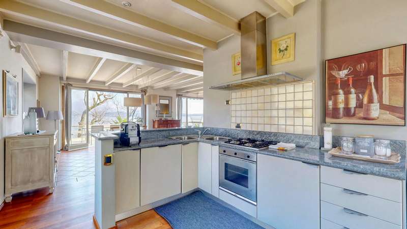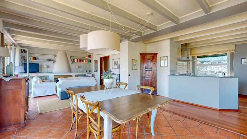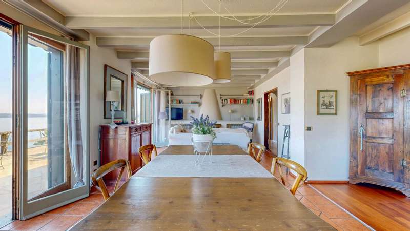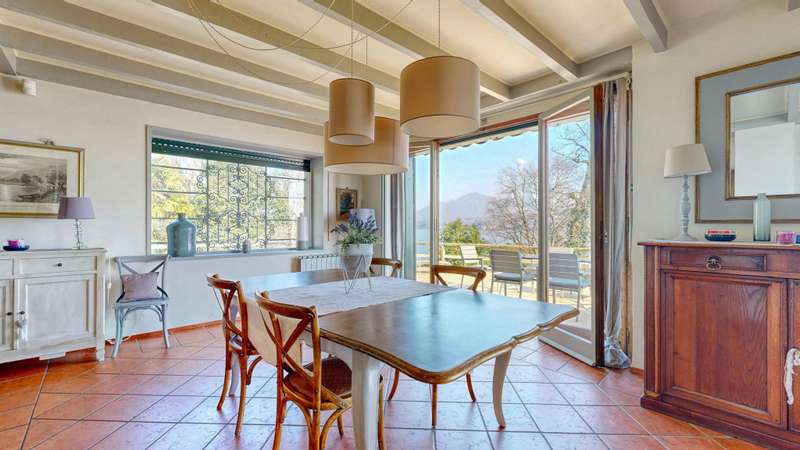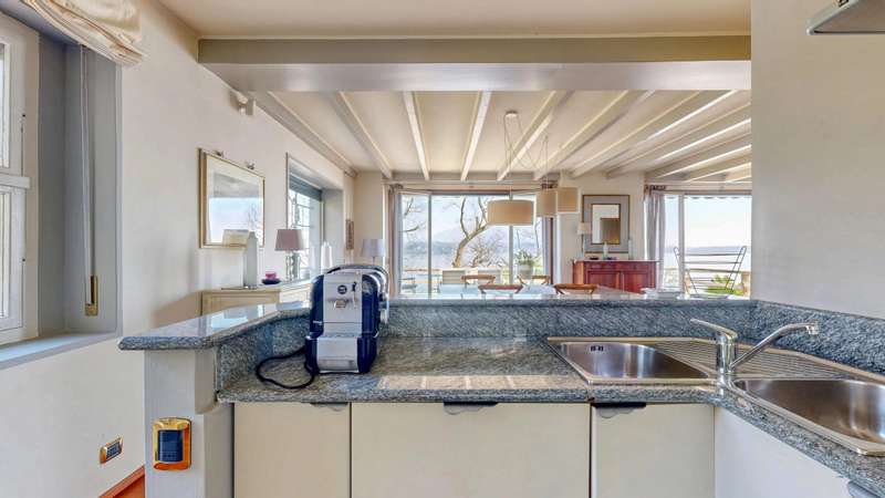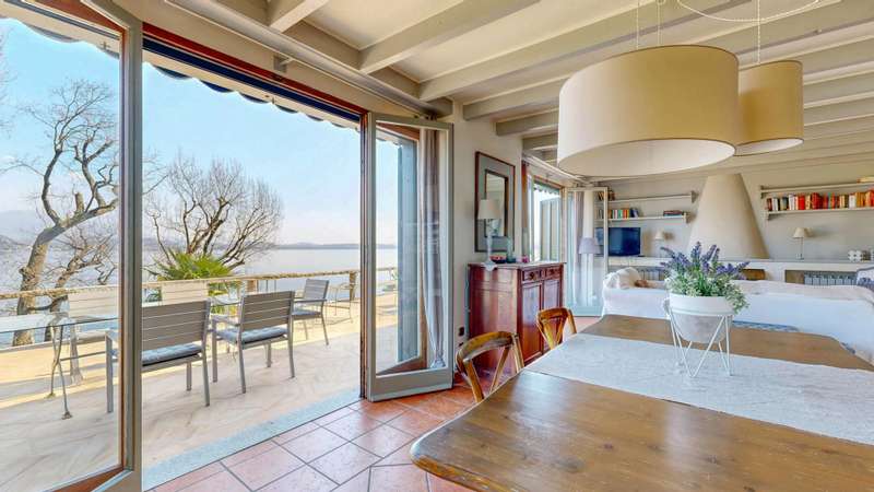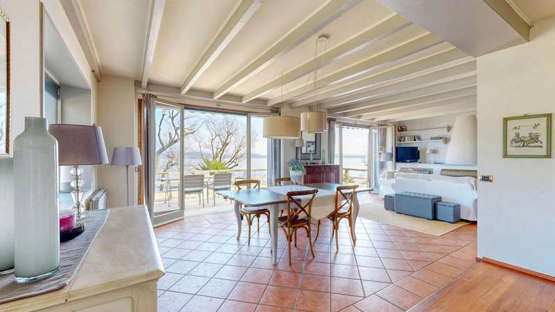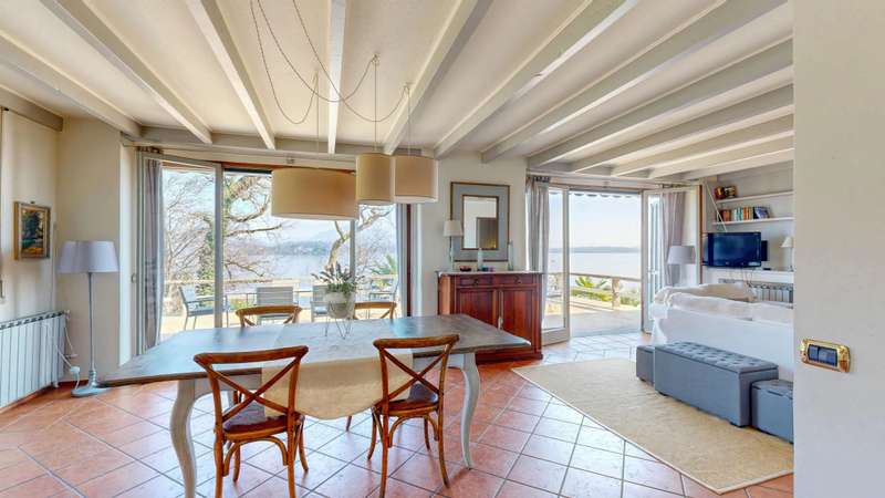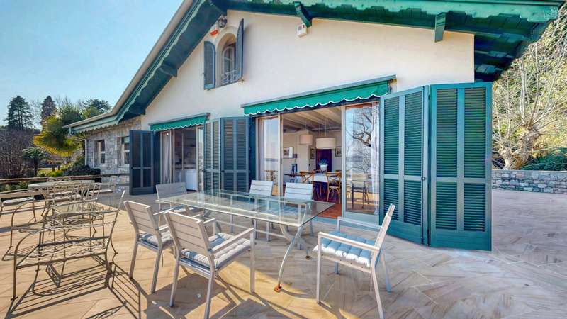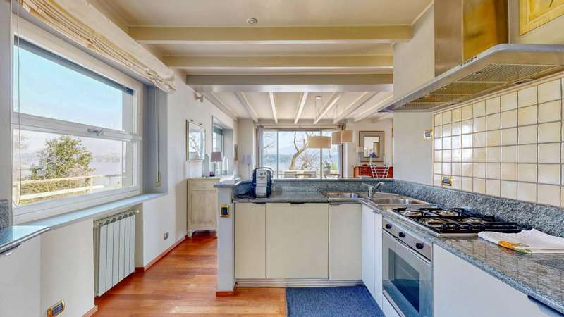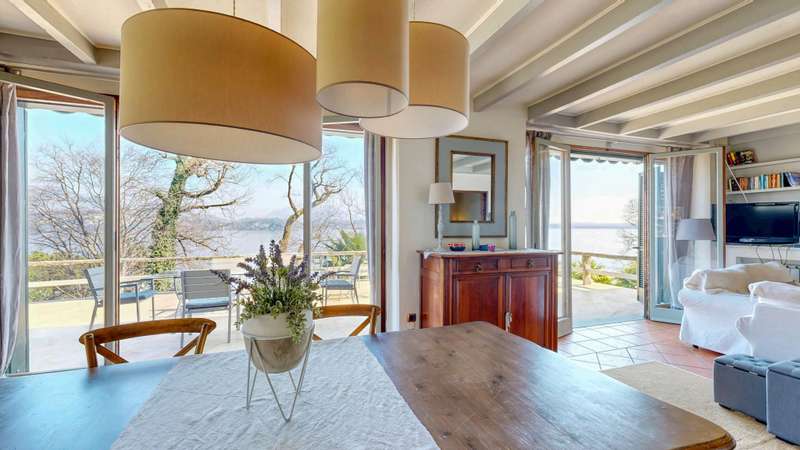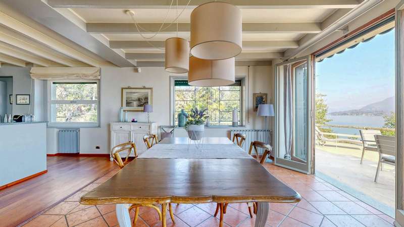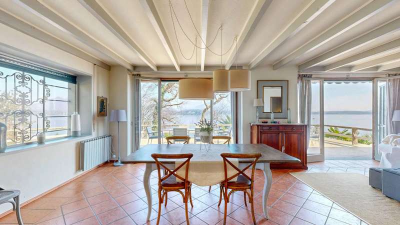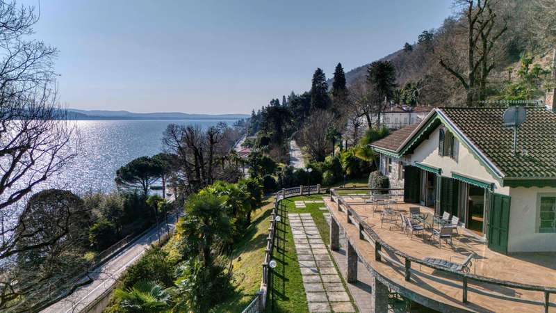 Located in the picturesque town of Belgirate, this magnificent villa covers 500 m² of pure elegance. The property is surrounded by a verdant and peaceful landscape and offers enchanting views of the lake and surrounding hills. With a refined architectural design and high-quality materials, this villa represents a perfect combination of luxury and comfort. The villa, spread over three levels, has spacious interior spaces that are bright and welcoming. Large windows lend great brightness, creating a warm and welcoming atmosphere in every room. The interiors have been carefully designed to ensure an excellent balance between functionality and style. The ground floor has an entrance hall that connects to the living room, dining room, and large kitchen. All these rooms are open and ideal for hosting convivial moments with friends and family. The whole is connected to the outside with a terrace and a porch. Continuing on the ground floor is the guest bathroom. On the second floor we find another kitchen with a large living room overlooking a large terrace. This area could be converted into bedrooms, should the need arise. Continuing on the floor are the two bedrooms and two bathrooms. The bedrooms offer breathtaking views of the lake and surrounding hills, turning every awakening into a unique experience. On the second floor, in the attic, there are four rooms and a bathroom. Outside, the property boasts a well-kept garden with paved terraces, ideal for moments of relaxation and outdoor entertainment. The villa's prime location ensures privacy and tranquility while being within easy reach of major amenities. Crossing the road you reach the lakeside garden with its beach. In the garden there is a beautiful greenhouse with two changing rooms and a bathroom. This villa in Belgirate is an unmissable opportunity for those who wish to experience the authentic charm of Lake Maggiore and are looking for an exclusive residence in one of the most fascinating locations in Italy.