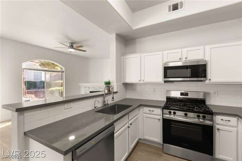 Fully remodeled condo in the heart of Henderson! This exceptional property will not disappoint. Located on the ground floor, it boasts panoramic views of the park. Features two generously sized bedrooms and two beautifully remodeled bathrooms. All flooring, appliances, ceiling fans, and fixtures are new! Offering the perfect blend of comfort and spaciousness, with a particularly inviting living room. Additionally, it includes an assigned parking space. The community provides a wide range of amenities, such as a clubhouse, community pool, spa, and exercise room. Furthermore, the gated community ensures privacy and security, allowing you to unwind and enjoy your surroundings in tranquility. Conveniently situated near shopping, dining, and other popular local spots, this is an ideal choice for those seeking a comfortable and vibrant lifestyle. Do not miss the opportunity to make this desirable unit your new home!