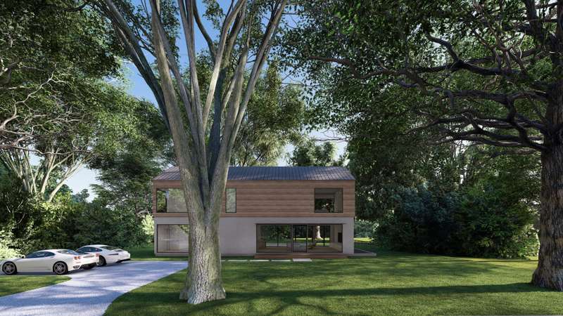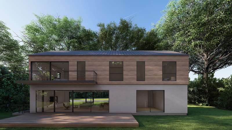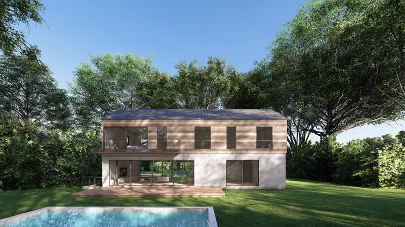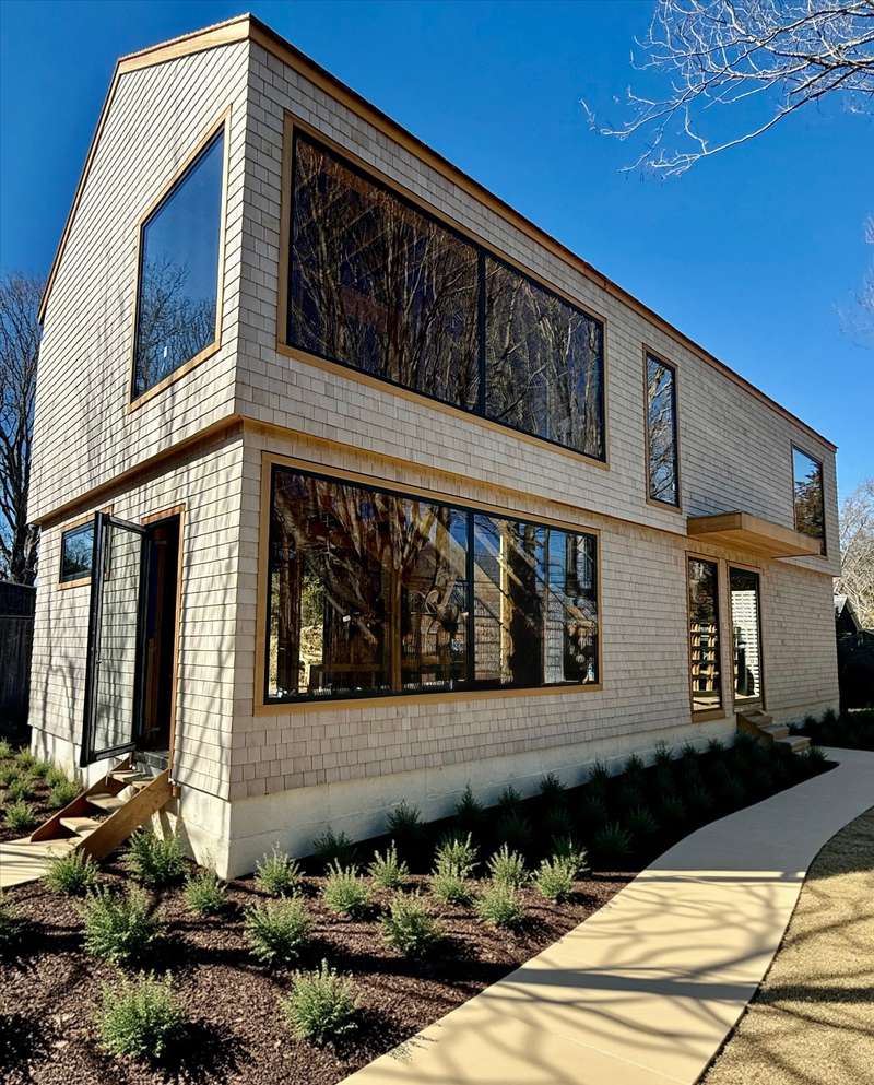 This newly custom-designed 2,514 SF home offers 4 bedrooms and 4 baths, featuring a separate one-of-a-kind oversized barn with 18-foot ceilings. A striking 8-foot by 4-foot pivot door opens to an expansive open-concept floor plan with 10-foot ceilings throughout. The modern kitchen is equipped with Subzero appliances and can be tailored with the buyer's choice of materials and finishes. Throughout the home, wide-plank engineered oak flooring and sleek, minimalistic wood trim create a sophisticated atmosphere. The upper-level primary bedroom and bath are generously sized, complemented by three additional guest bedrooms, each with its own en suite bath. The upper level also includes a laundry room and a versatile office/den, featuring floor-to-ceiling windows that flood the space with natural light. The outdoor space boasts a heated Gunite pool with marble coping and a rear IPE wood deck. The lower level, with its 10-foot ceilings and walkout area, offers an additional 900 sq