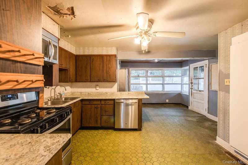 Great investment opportunity. Fantastic location surrounded by well maintained homes. Three bedrooms, one full bathroom, hardwood floors, brick fireplace, large living room and dining room, laundry room with plumbing for half bath. Mature landscape, front porch, patio off kitchen.Full unfinished basement. One car garage under. Close to Marist College. Metro North. Shopping and schools.