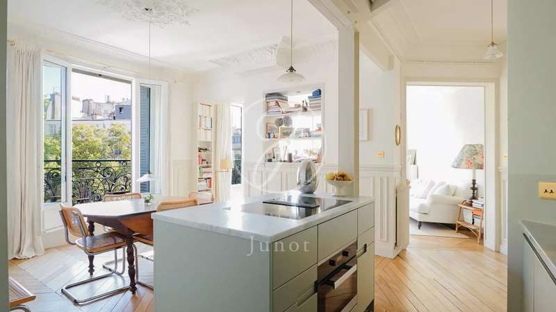 Ideally located in the Vavin district, this apartment is on the fourth floor by elevator of a beautiful Haussmann-style corner building. This characterful property, measuring 78.06sqm under Carrez law and 81.40sqm on the ground floor, benefits from exceptional luminosity thanks to its corner position and numerous windows with unobstructed views. The apartment combines old-world charm, with parquet floors, moldings and a functional fireplace, with meticulous renovation. It comprises an entrance hall with dressing room, a spacious corner living room bathed in light with three large windows and a functional fireplace, a vast kitchen/dining room opening onto a convivial dining room, a master bedroom, a second quiet bedroom overlooking the courtyard, a bathroom with a laundry area and a separate toilet. This perfectly optimized apartment is in excellent condition and also has a cellar. A rare offer in a sought-after location, just a stone's throw from shops, the Luxembourg Gardens and the Vavin and Raspail metros.