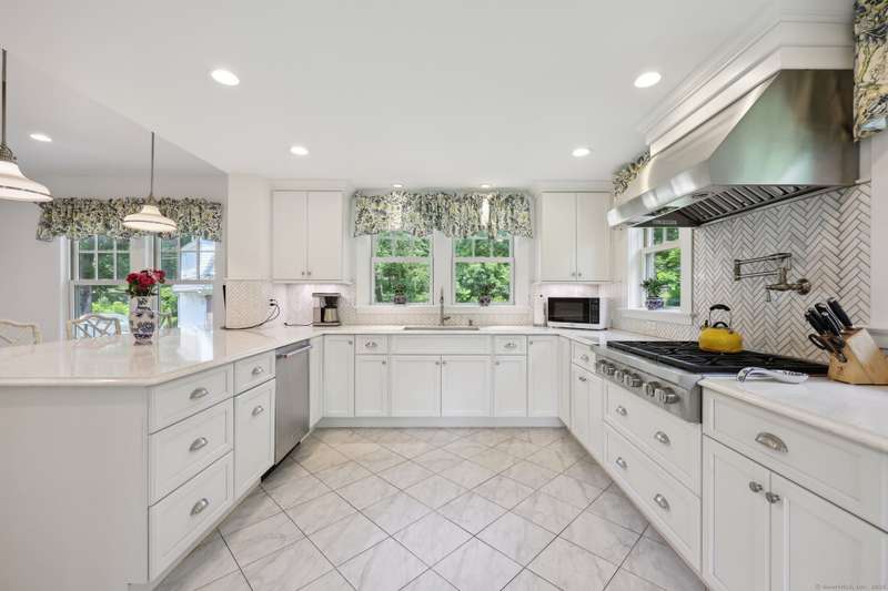 Classic Elegance Meets Modern Comfort on Ridge Road! Welcome to 2200 Ridge Road, a distinguished brick Georgian Colonial set on 2.54 private, park-like acres in one of North Haven's most coveted neighborhoods. Built in 1926, this stately 6-bedroom, 3.5-bath residence offers 4,023 sq ft of gracious living space, seamlessly blending timeless architecture with thoughtful modern updates. A grand foyer welcomes you into sun-drenched formal and casual living areas. The refined formal living room features a classic fireplace and flows effortlessly into a cozy screened-in porch-an ideal spot to relax with a book or entertain guests. At the heart of the home, the light and airy chef's kitchen boasts a large center peninsula, Wolf gas range, breakfast bar, and generous space for dining and gathering. Rich original details and solid craftsmanship are thoughtfully preserved throughout, creating a warm and inviting ambiance. Upstairs, six well-appointed bedrooms offer exceptional flexibility for mu