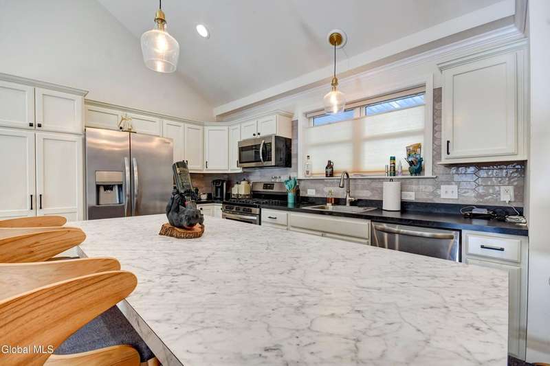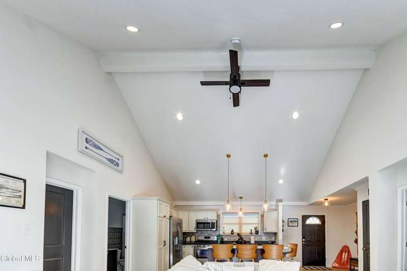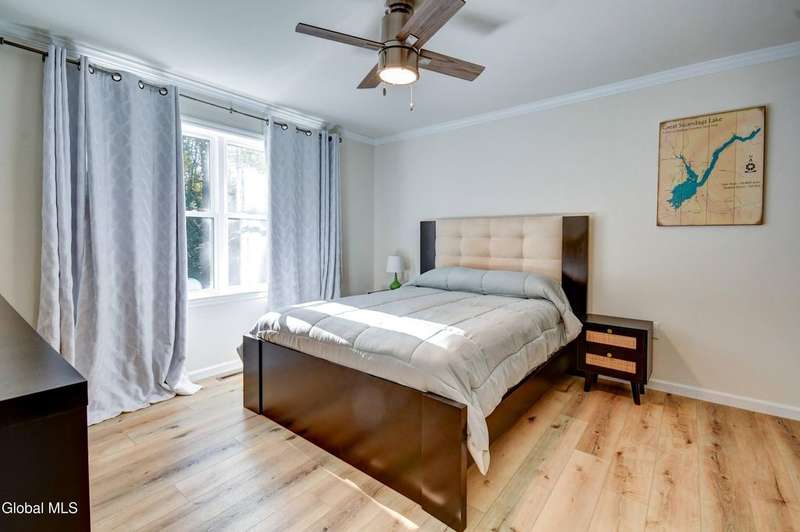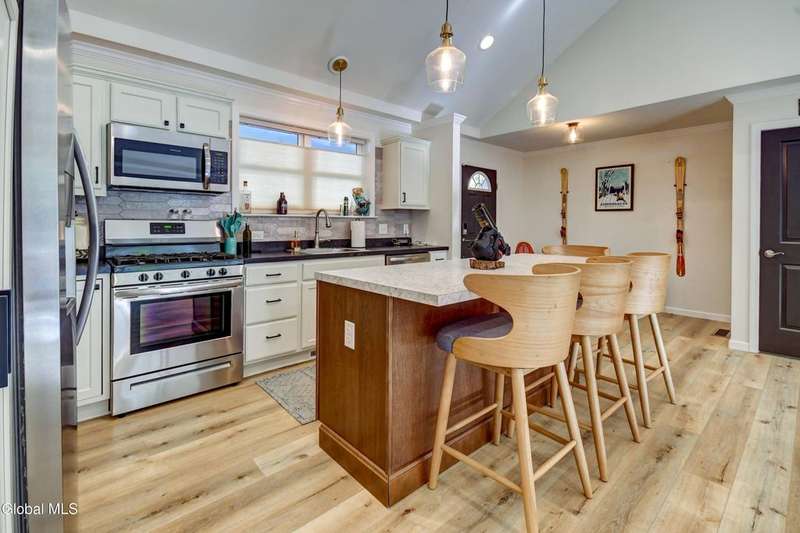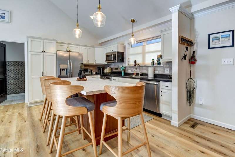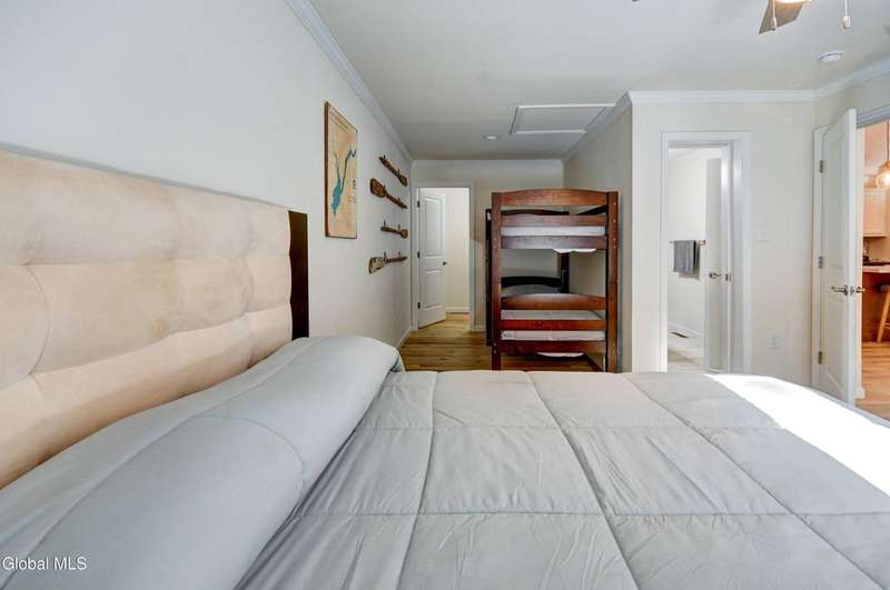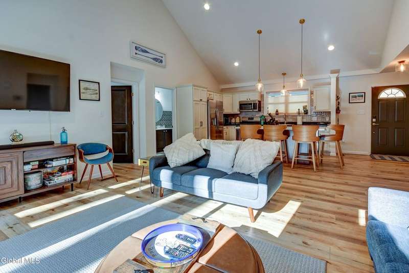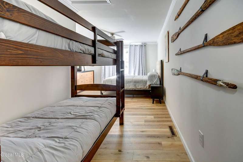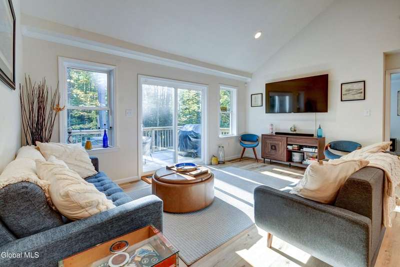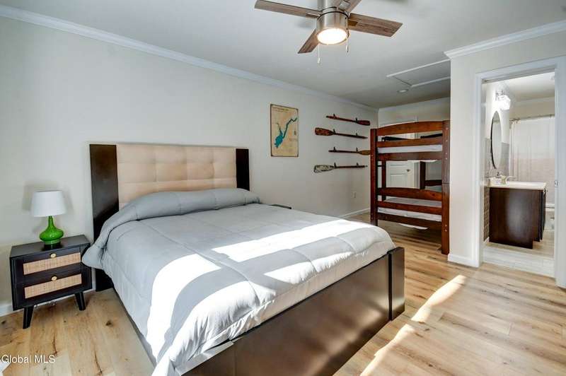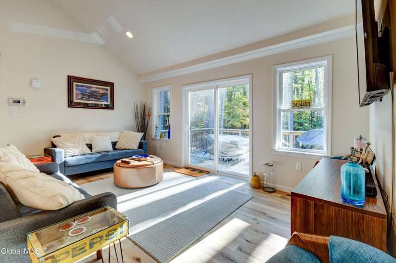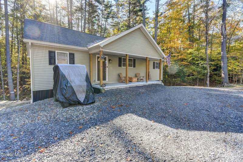Lakeside living at its best! Enjoy 157' of HRBRRD lake frontage on the Great Sacandaga Lake with a gradual beach area and a 5 year old year round home. This open-concept house features a living room, dining area, and kitchen with cathedral ceilings, two spacious bedrooms, and two full baths. The basement could easily be finished for more living space. Outdoor living includes two decks, one off the living room and one from the basement, a private backyard with a firepit, and a newly built pressure-treated bridge for easy lake access. Home comes mostly furnished (excluding personal items and artwork) and includes an 80' wooden dock, mooring buoy, and smart-home setup with exterior Blink cameras, Ring security system, and thermostat. Used as an Airbnb, this move-in ready home offers year-round Adirondack fun. Red tool cart and tools excluded. No roads to cross! Just bring your clothes and toothbrush and start enjoying your slice of lakeside paradise!