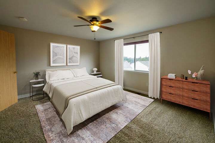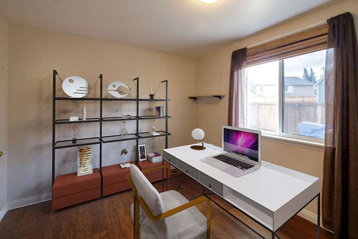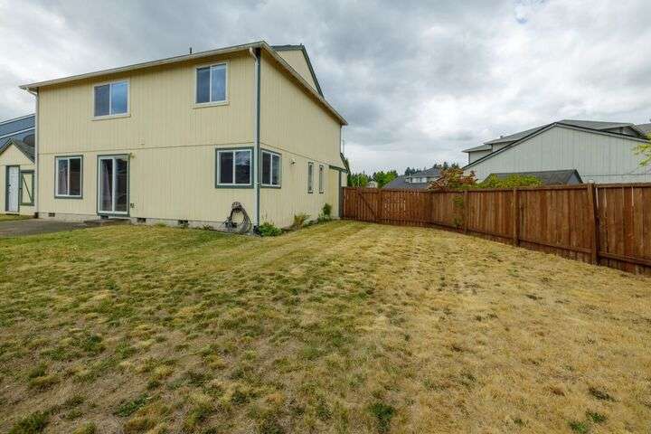 Price reduced for quick sale! Largest lot in the neighborhood, this two-story features wooden flooring, built-in bench and coat rack in the foyer. Living/dining area with cozy tiled gas fireplace, with second living space featuring slider access to backyard. Kitchen provides ample counter space and storage with a corner window above the sink.A/C system adjustable remotely. Downstairs den/office. Upstairs is large loft, 3 secondary bedrooms, a full bath, and a primary bedroom suite overlooking a stunning forested valley. Mature fruit trees, dedicated garden area, and spacious shed in backyard. Located just minutes from Lacey and Olympia, you'll enjoy easy access to shopping, dining, schools, parks, and a short commute to JBLM and Tacoma.