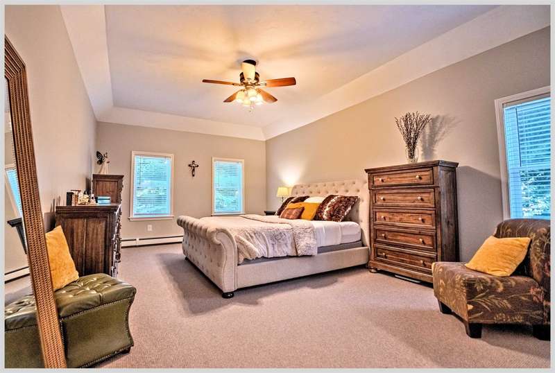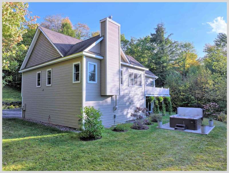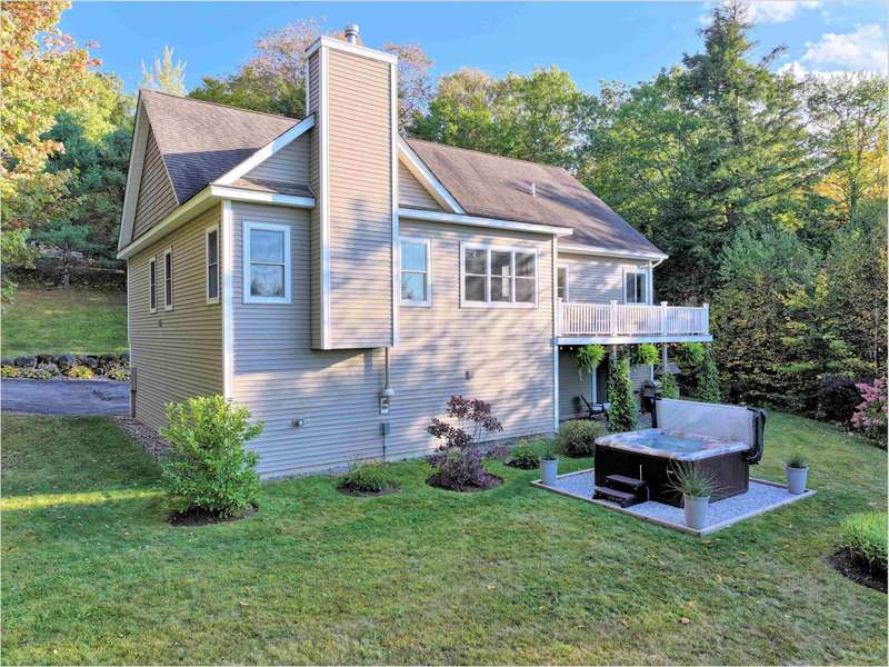 Welcome to one of Campton’s most desirable neighborhoods! Set on 3.4 private acres, this home offers the perfect blend of seclusion and community. The quiet road evokes a simpler time, when kids rode their bikes and played kickball in the street. Inside, the main level is bright and open with cathedral ceilings and large windows that bathe the living space in natural light and allow you to enjoy the beautiful colors of the landscape from the comfort of your living room. The kitchen and living room flow seamlessly, leading to a deck overlooking a beautifully landscaped yard and the mountains beyond. The first-floor primary suite features tray ceilings, a walk-in closet, and a luxurious bath with a whirlpool tub. Two additional bedrooms, a full bath, laundry room, and formal dining room complete the main level. The walkout lower level offers wonderful flexible space, currently being utilized as a photo studio, office, and gym, it could become your great game room or second family room. The space opens out to the back yard where the hot tub awaits you. This is the perfect spot to unwind and watch the sunset paint the western sky orange and pink at the end of the day. The lower level is rounded out with a guest room, full bath and storage. The two car garage guarantees that you no longer will have any need to scrape ice off your windshield or trudge groceries in through the rain. This home offers convenience, comfort and privacy and is ideal for your next step.