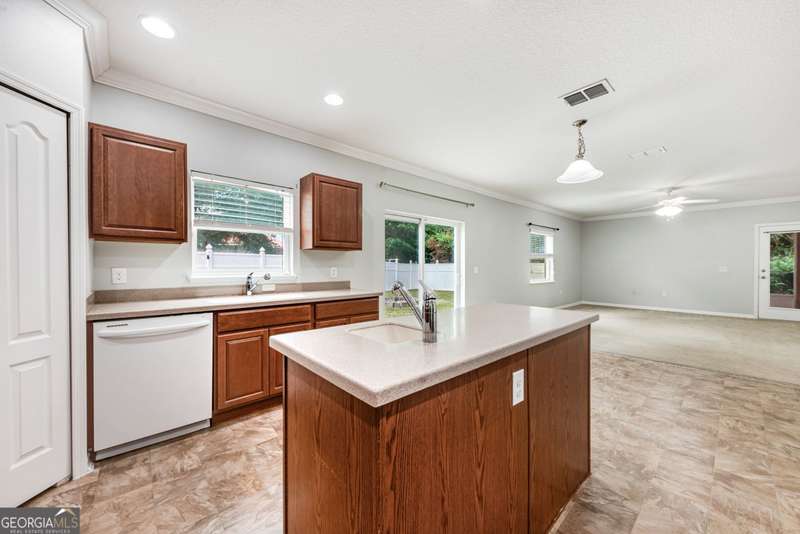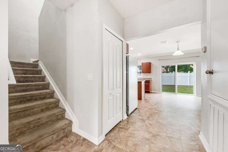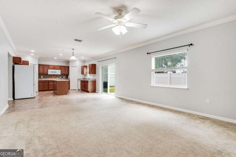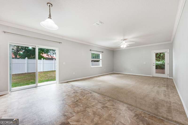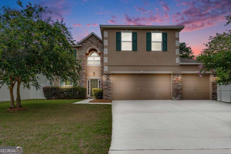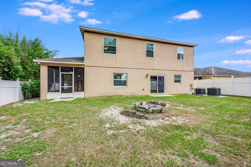 This well-designed two-story home offers 5 bedrooms, 4 full bathrooms, and apx 3,010 square feet of living space. Built with sturdy cinder block construction and finished with a low-maintenance stucco exterior, the home combines function and flexibility across two levels. Upstairs Features: The primary bedroom includes a vaulted ceiling, a large walk-in closet, and a private bathroom with a garden soaking tub, separate shower with built-in bench, water closet, and double vanities. A second upstairs bedroom has its own private bathroom. Two additional bedrooms share a hall bath with a tub/shower combination and double sinks. A loft or den provides additional flexible space. The laundry room is also located upstairs and includes a washer and dryer. Main Floor Features: A two-story foyer opens to a formal dining room or flex space with crown molding. The spacious family room connects to the dining area and kitchen, with access to a screened back porch that includes two ceiling fans. The kitchen offers a center island with a prep sink, a main sink under the window overlooking the fenced backyard, GE Profile appliances including a 5-burner smooth-top cooktop, microwave hood, and double wall ovens. Two pantries and generous cabinet storage provide ample kitchen organization. The downstairs bedroom includes a walk-in closet and private access to a full bathroom, ideal for guests or multigenerational living. Additional Details: Three-car garage with automatic doors. Crown molding in the dining room, kitchen, family room, and downstairs bedroom. Sliding glass doors from the dining area lead to the fenced backyard. Location: Located near I-95 at Exit 1, this home offers convenient access to: Jacksonville International Airport - approximately 30 minutes ,Naval Submarine Base Kings Bay - approximately 14 minutes Fernandina Beach (Main Beach) - approximately 30 minutes, Local shopping and dining, including Chick-fil-A - within 10 minutes