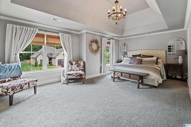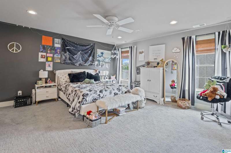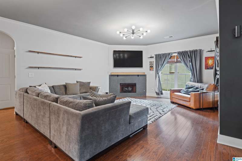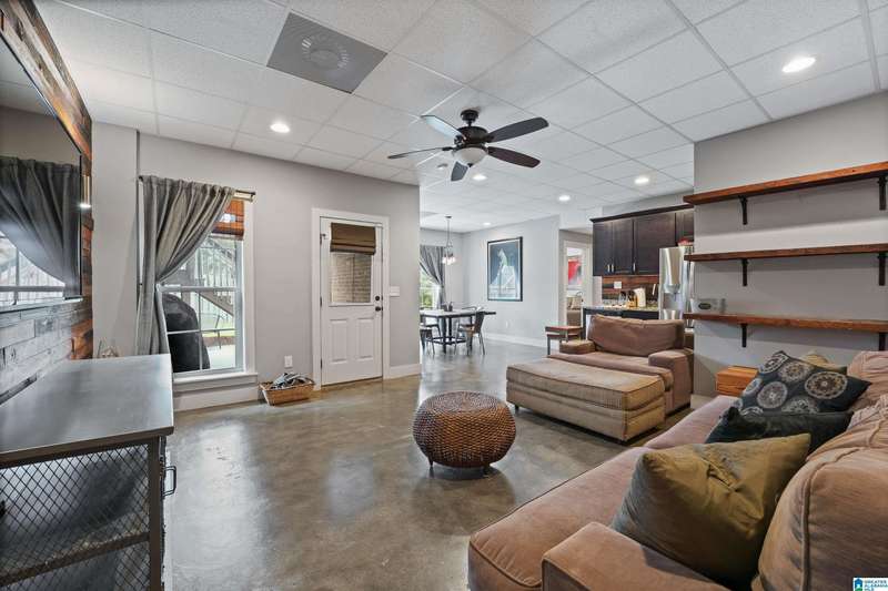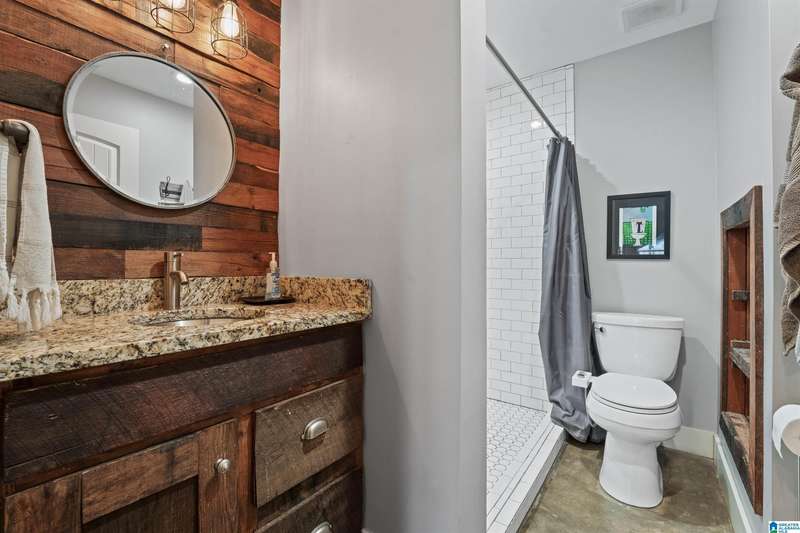 Welcome to this beautifully designed home in the desirable Grants Mill Crossing neighborhood! With 5 bedrooms and 4 full bathrooms, this home offers the perfect blend of comfort, space, and functionality for any lifestyle. The main level features a spacious living area, a well-appointed kitchen, and a conveniently located bedroom and full bathroom. Step out onto the screened porch and enjoy peaceful views, perfect for morning coffee or relaxing evenings. Upstairs, you'll find three generously sized bedrooms, including the primary suite, and two additional full bathrooms. The finished basement offers even more living space with a second living room, dining area, an additional bedroom, and a full bathroom. Plus, it includes a storm shelter for added peace of mind. A rare find for the neighborhood! Don't miss a chance to see this gem!