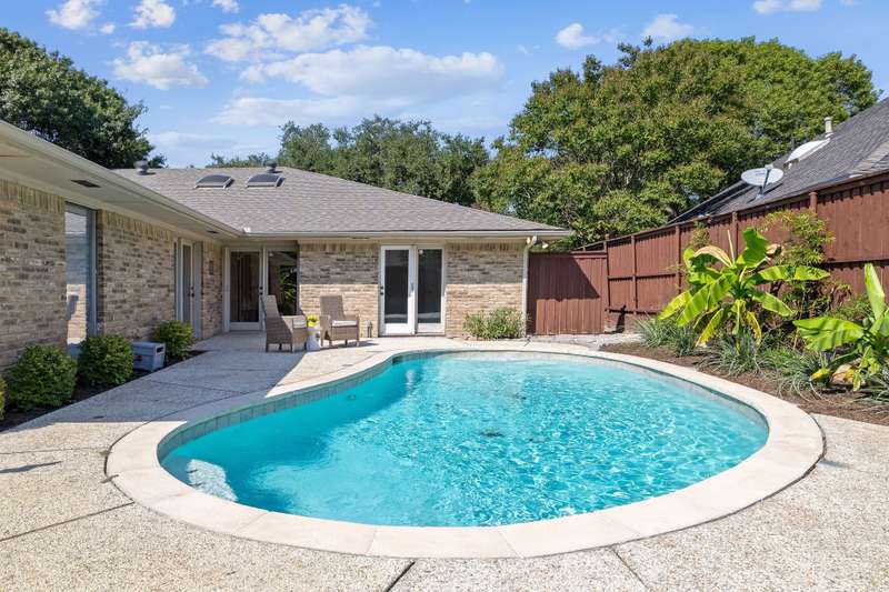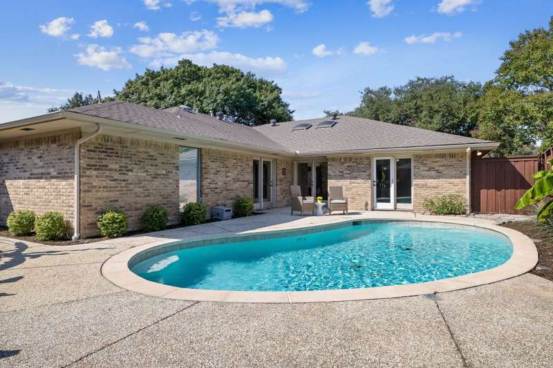 Remarkable sprawling 3300 sq ft 1 story with a pool. Beautiful, real hardwood floors through out the living areas and kitchen. A welcoming entryway leads directly into a cozy living area with an abundance of natural light streaming in from the skylight and offering views of the pool and the large backyard beyond. A spacious dining room with a wall of windows is perfect for your large family dinners. The kitchen, which is centrally located between the 2 living areas for easy access, offers granite countertops, a built-in desk, and an abundance of cabinets and storage. The large primary suite is split from the secondary wing which offers a large living area, 3 bedrooms, 1 full bathroom, and a Jack and Jill bathroom. The second living area offers an inviting fireplace for cozy winter evenings. Last but not least is the extremely private backyard equipped with a fabulous pool and mature landscaping. This home is centrally located with shops, schools, and restaurants only minutes away.