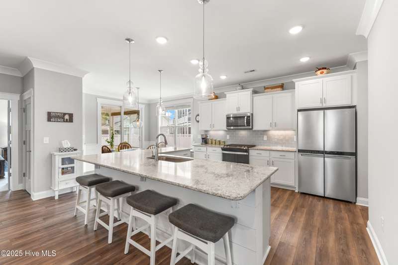Welcome to the Bailey Elevation E built by Windsor Homes a thoughtfully designed 4-bedroom, 2.5-bath home offering both comfort and style. Sitting on one of the larger lots in the community at 0.42 acres, this home provides plenty of space both inside and out.The first-floor primary suite features a walk-in shower and spacious closet, while the open-concept layout connects the large kitchen island to the great roomperfect for entertaining. A formal dining area adds a touch of elegance to the main floor. Upstairs, you'll find three generously sized bedrooms and a versatile loft spaceideal for a home office, playroom, or additional lounge area.High-quality finishes include LVP flooring in the main living areas, tile in the bathrooms and laundry room, and cozy carpeting in the bedrooms. The kitchen shines with Himalayan Moon Quartz countertops and a stainless-steel appliance package, blending function with modern style.Located in Summerhouse on Everett Bay, a beautiful golf-cart-friendly waterfront community nestled between Surf City and North Topsail Beach, this home offers resort-style living with access to a clubhouse, fitness center, pickleball courts, resort-style pool, day docks, walking trails, boat storage, and more. Plus, you're just a short drive from Wilmington, Jacksonville, and the area's beautiful beachesmaking this location as convenient as it is scenic.As an added bonus, the seller is including the golf cart and covering the first year of HOA dues with an acceptable offer.Don't miss this rare opportunityschedule your private tour today!