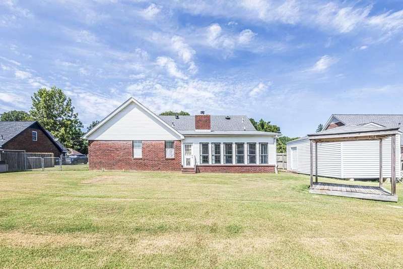 Charming 3-bedroom, 2-bath home situated on .83 acre lot in a wonderful neighborhood with no city taxes! This property offers a HUGE fenced backyard, perfect for outdoor living, complete with a 20x12 workshop for hobbies, storage, or projects. There is also a dog kennel. Inside, you'll love the inviting sunroom with its own HVAC ideal for relaxing with morning coffee or enjoying natural light year-round. Spacious kitchen with breakfast bar and breakfast room. New paint in family room, foyer, primary bath, and laundry room! Conveniently located with easy access to Hwy 51 and all major shopping and dining in Millington. This home combines peaceful living with everyday convenience. Refrigerator and washer dryer included as is.