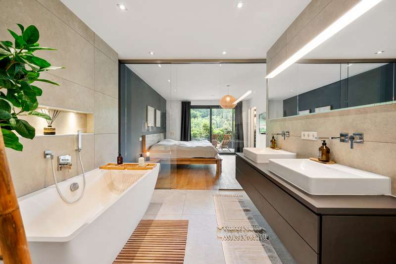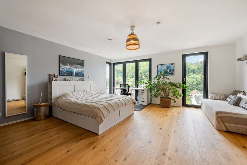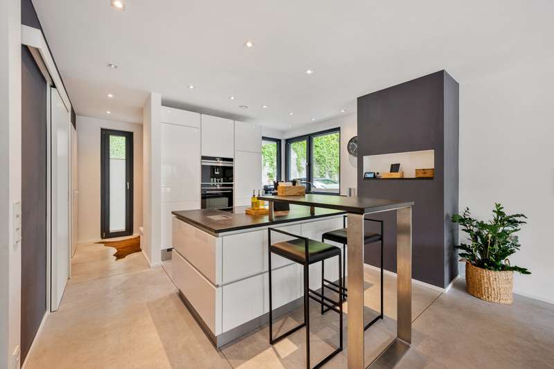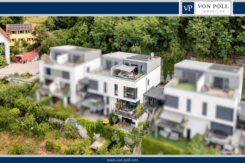 This exclusive semi-detached house was built in 2019 and presents itself with a living space of approx. 222m² on a 311m² plot. The property not only impresses with its spacious architecture and high-quality fittings, but also with its exceptional energy efficiency class A plus, which stands for sustainable and future-oriented living. Upon entering the first floor, an inviting hallway opens up, which is adjoined by a practical checkroom. The light-flooded living and dining area with access to the balcony forms the heart of this floor and creates a harmonious connection between indoor and outdoor space. The elegant, luxurious kitchen impresses with its clear lines and high-quality fixtures and fittings. A guest WC and a storage room complete the well thought-out room layout. A bright hallway, two comfortable children's rooms, a stylish bathroom and another storage room await you on the upper floor. The top floor impresses with a spacious attic studio, an additional guest bathroom and a sunny terrace with a fantastic distant view, which offers a wonderful retreat. An area with a very special charm awaits you on the garden floor. The quiet bedroom opens directly onto the terrace and leads seamlessly into the adjoining dressing area. A real highlight is the luxurious bathroom, which is separated from the bedroom by an elegant glass wall - modern, open and with a touch of extravagance. An external staircase leads from the terrace directly down to the idyllic garden. This floor is rounded off by a conveniently located utility room. The furnishings of this property are impressive with fine parquet flooring and elegant tiles that create a timeless ambience. Two terraces, a balcony and a well-tended garden invite you to linger. Additional comfort is provided by an electric awning, electric blinds, triple-glazed windows and a modern fingerprint door. Video surveillance ensures a high level of security. Underfloor heating provides cozy warmth, while an air-to-water heat pump and a photovoltaic system enable sustainable living at the highest level. A carport and an additional parking space round off the offer. The location in Weinheim combines the quiet living atmosphere of a mature environment with the advantages of an excellent infrastructure. Shopping facilities, schools and leisure activities are all within easy reach, while the charming old town and idyllic surroundings promise a high quality of life. This semi-detached house combines timeless elegance, modern technology and a well thought-out living concept to create a property that meets the highest standards. A home that impresses with both its architecture and its furnishings and offers you a luxurious living experience in a prime location.