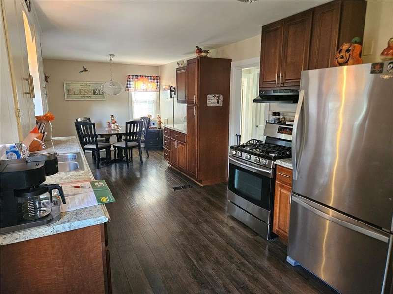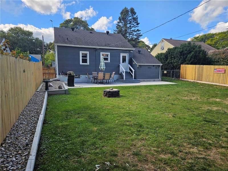 Welcome to the cutest Cape Cod on the street! Conveniently located just minutes from 104 and 390, you'll have quick access to restaurants, shopping and everything that you will need. Beautifully, secluded fenced in back yard w/landscaping lights and even a TV mount on the back patio to watch your favorite game - Pool can either stay or can be removed before closing. Step inside to a modern oversize eat-in kitchen with all new appliances. Relax in front of the fireplace in the bright living room or find a desk nook upstairs to get some work done! First floor primary holds a king size bed and a brand new white bathroom provides 1st floor living. The second floor holds a second bedroom with a brick accented wall. The garage is an additional hang out spot or could be turned back into a place for your car during the winter months. Updates include gleaming laminate floors through-out the home, 2025 Hot water tank - 2015 Central A/C - 2010 Forced Air Heat - 2010 New Roof. Nothing to do but move in and enjoy your new home!Delayed Negotiations begin on 10-22-2025 at 3:00 pm. Open House Saturday, October 18th 11 to 1.