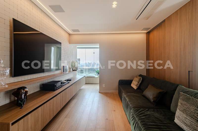 Acabamentos de ótimo padrão em todo apto, ar condicionado instalado em todos ambientes, rico em marcenaria