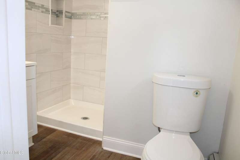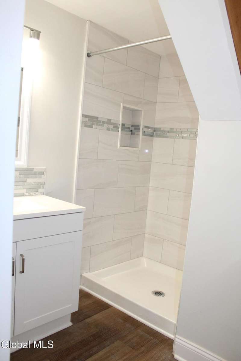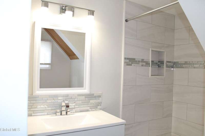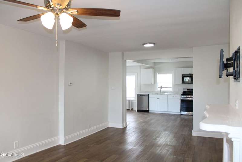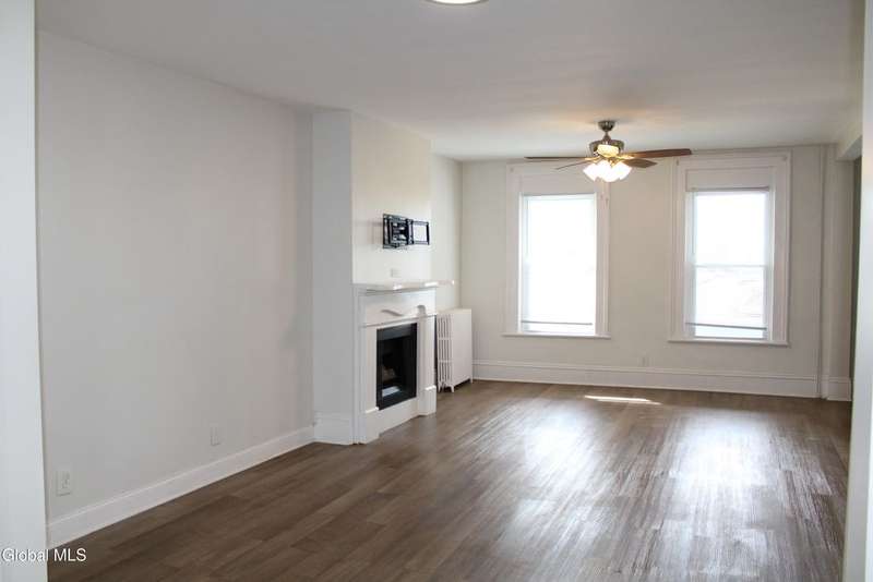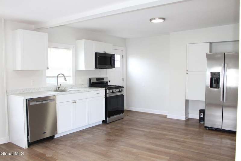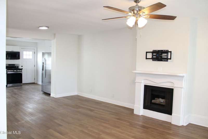Spacious home with open Floorplan & freshly painted throughout . Large living room with fireplace, flows into Kitchen & dining area. Updated Eat in Kitchen has stainless appliances , new cabinetry & stone counter tops, with extra storage nook for plenty of storage or maybe a coffee station & plenty of sun-filled windows. First floor full bathroom tastefully renovated. Second floor master with walk in closet. Second floor laundry room . Two additional bedrooms. Large second full bathroom with beautiful tile work & tub. Privately fenced yard with patio area. Off street parking. Ideal location & minutes to I-90 & downtown Albany.