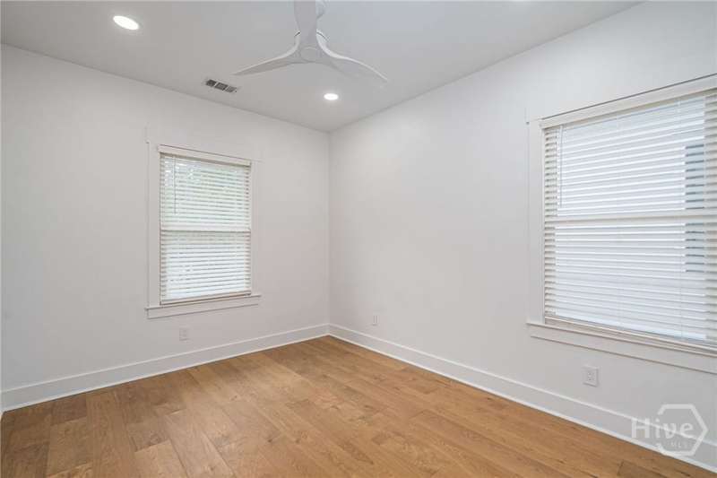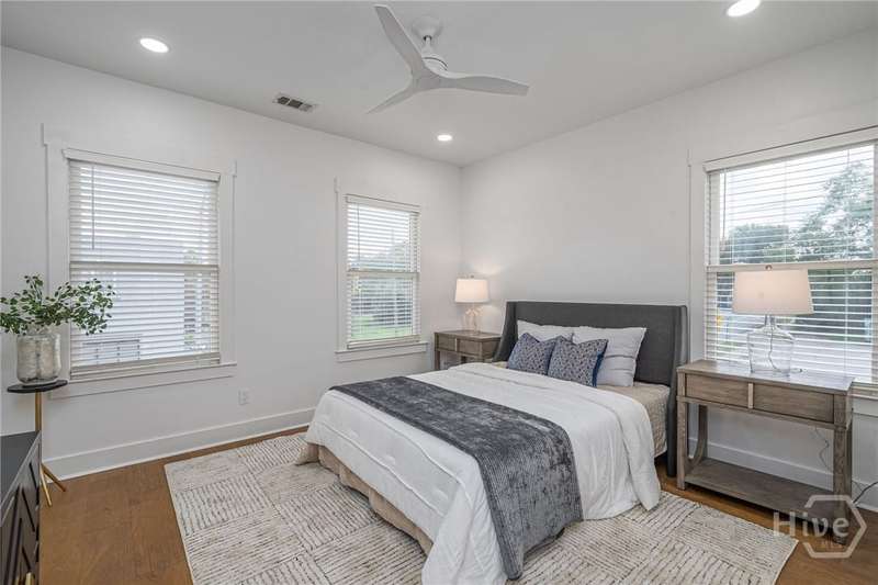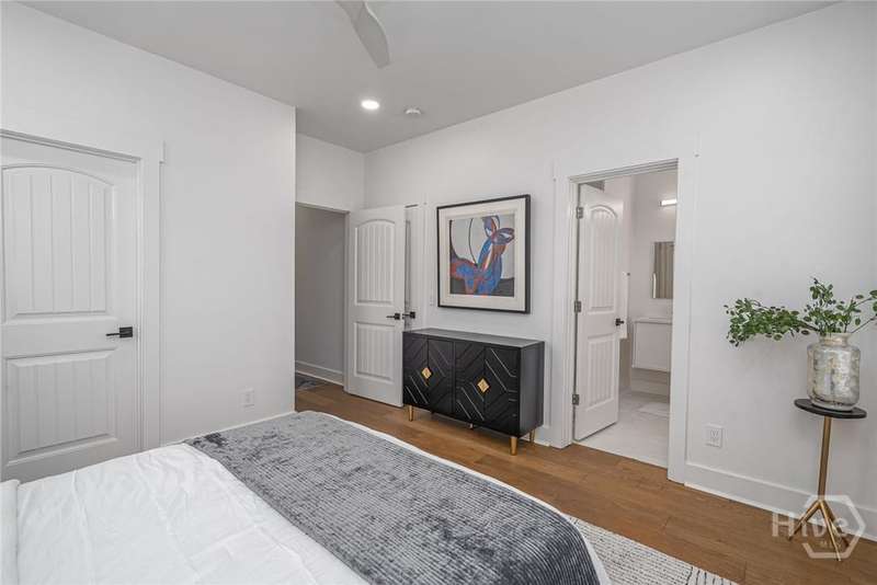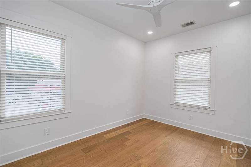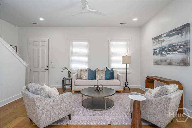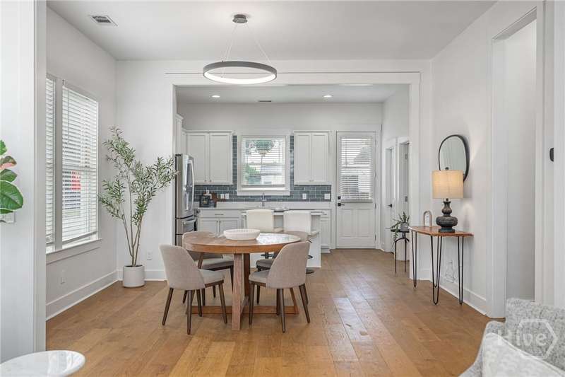 Welcome to 545 East Anderson Street, a stylish newer construction home (2015) that has just been thoughtfully renovated. Situated on a sunny corner lot, this residence offers a bright and airy open floor plan with designer touches throughout.The main level showcases a spacious living and dining area flowing seamlessly into a stunning kitchen, complete with crisp white cabinetry, sleek quartz countertops, brass hardware, stainless steel appliances, and a chic green subway tile backsplash. A half bath is conveniently tucked off the kitchen. Upstairs, youll find three bedrooms and two full baths, including a serene primary suite with abundant natural light. Bathrooms have been tastefully updated with modern fixtures and finishes.Enjoy the outdoors with a large fenced backyard, perfect for entertaining, and two rare off-street parking spaces. The inviting front porch further enhances the homes charm.Located just blocks from SCAD buildings and within walking distance to some of Savannahs best dining, including Cotton & Rye, Shuk, Big Bon Bodega, Common Thread, and so much more, this home offers the ideal blend of modern comfort and vibrant city living.