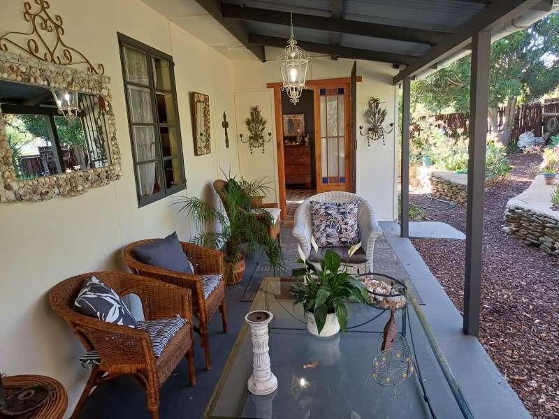 A Tranquil Treasure! Discover your perfect home in the small town of Barrydale in the Klein Karoo, with this charming 3-bedroom, 2-bathroom house set on a easy to maintain 591sqm erf. A charming south facing stoep/veranda that offers shade during those warm Klein Karoo Summer days leads us through the front door to the cosy reception and lounge areas opening up to the to the hallway. Large windows invite abundant natural light and provide picturesque views of the established low-maintenance garden and surrounding trees that also offer shade and cools down the surroundings. The open-plan kitchen, complete with built-in cupboards, flows seamlessly with a welcoming dining room. It also offers a handy homemakers dream - a walk in pantry. Right outside the kitchen?ÇÖs back door boasts a Lemon Tree that fills the kitchen with a delightful citrus blossom scent in Spring and provide bountiful produce in the next season. Get that country living feel! Ideal for those looking to escape city life or work from home in peace. Experience peaceful living in the beautiful small town of Barrydale ! Please contact me for more photos and to schedule a viewing of this well priced dream home.