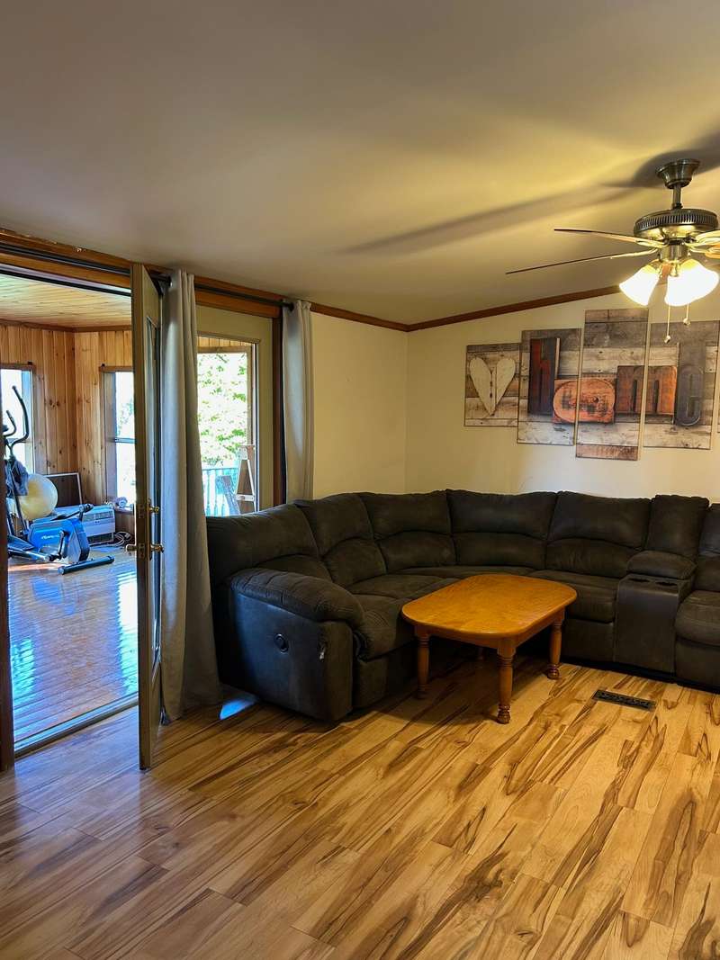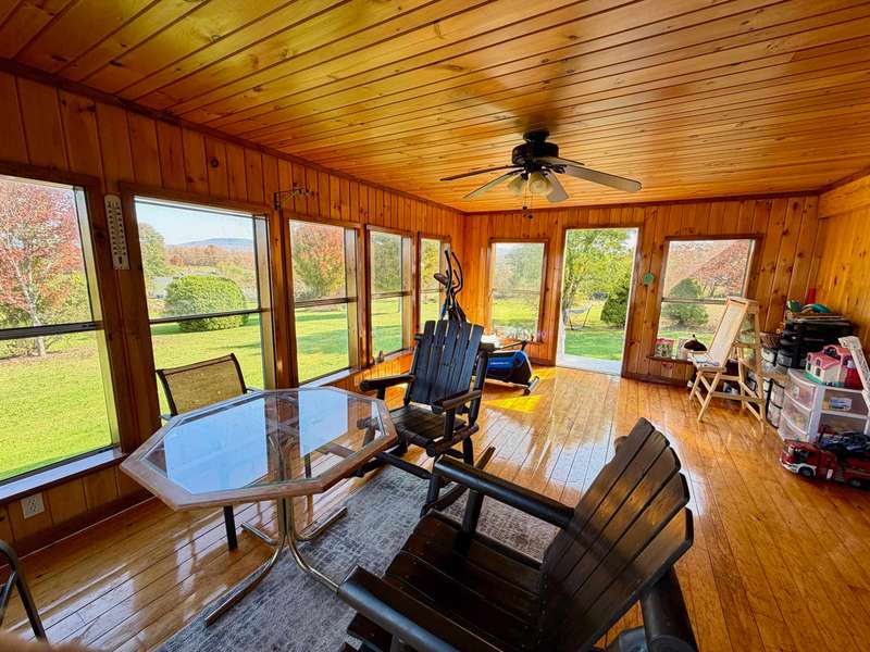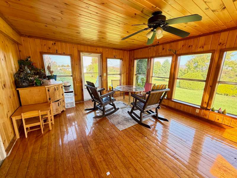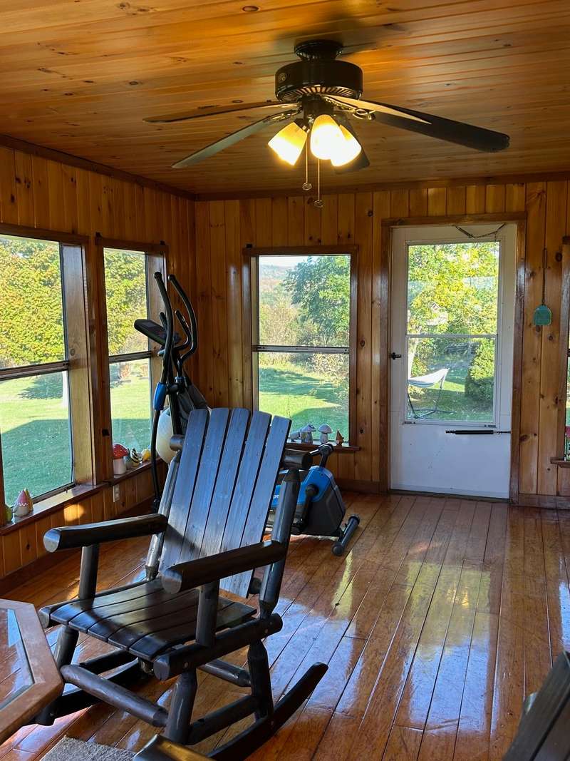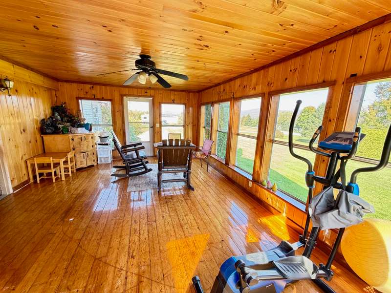 This charming 3-bedroom, 2 full bathroom home is nestled in a park-like setting with stunning mountain views, ready for its new owners. Double wide with large mud room entry, access to the garage, and a HUGE 3 season porch added on. Three car garage and a SHE shed! Enjoy the expansive lawn and mountain scenery from the three-season porch. The private yard features blueberries, a garden spot, and a fire pit, perfect for outdoor enjoyment. Cedar hedges provide privacy while maintaining a comfortable neighborhood feel. Kids can play in the tree house as the chickens watch from the coop! The three-bay garage offers ample space for vehicles, recreational toys, or even a hot tub room. This home is conveniently located close to schools, shopping, the library, and Copley Hospital. It's also just minutes from popular ski resorts like Stowe and Smugglers Notch, several breweries, restaurants, and Northern Vermont University-Johnson. Imagine evenings spent around the fire, with children cat