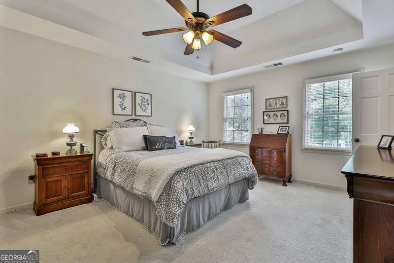 OPEN HOUSE Saturday (8/23) from 11-2 and Sunday (8/24) from 2-4. You've found the perfect place to call "home" in this brick front Georgian traditional situated in the heart of Peachtree City, offering both elegance and convenience. Nestled on an artfully manicured corner lot, the property features a six-zone sprinkler system ensuring lush, vibrant landscaping year-round. Inside, the spacious layout includes four bedrooms located on the upper level, including the Primary Bedroom Suite, complemented by two spacious closets and a spa-like bath. You'll note an additional hall bath and a powder room on the main floor for guests. The formal dining room and inviting living room provide ample space for entertaining, while the cozy den off the kitchen offers a perfect spot for relaxation or informal gatherings. The kitchen is equipped with granite countertops, stainless steel appliances, and a dedicated coffee station/bar area, blending style and functionality seamlessly. The vaulted rear screened porch is the perfect spot to enjoy nature and unwind. You've got plenty of space for outdoor dining and entertaining on both the porch and grilling deck. Additional highlights include an epoxy-floored garage, a fenced backyard, close proximity to neighborhood amenities and recent upgrades such as a BRAND NEW roof, NEW heating and cooling system, and a tankless water heater, ensuring comfort and efficiency. This home combines classic charm with modern amenities, making it an exceptional opportunity to enjoy all that Peachtree City has to offer.