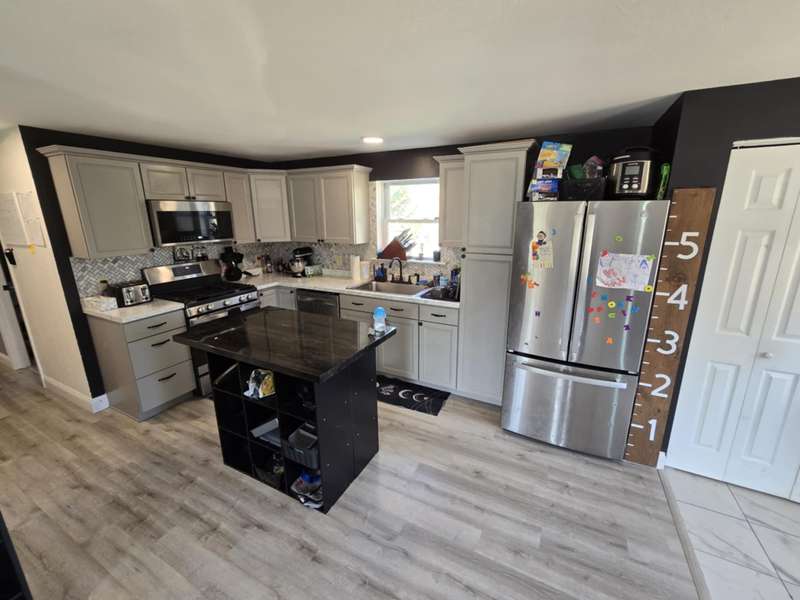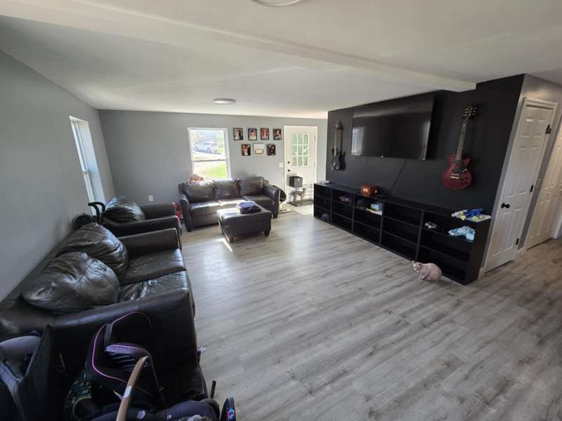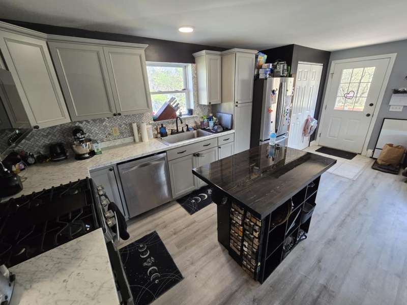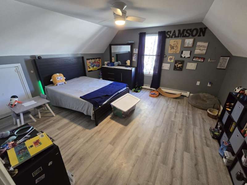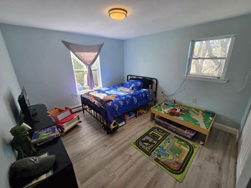 Newer built & rare 5 BR with 2 full bath Cape style home centrally located near schools, several parks and easy access to all Downtown offers yet sitting back from the road in usually private location. Just completely remodeled in 2024 with updated all new interior floors, kitchen with high end stainless appliances package including dishwasher and microwave, both baths updated and open concept main living area. Home has full dry basement which gives great storage but also could offer nice opportunity to add additional living space or hobby/gaming/area. Outside has fenced area in back and lots of room for activities, playground equipment etc. Don't wait as new construction hard to find at this price!