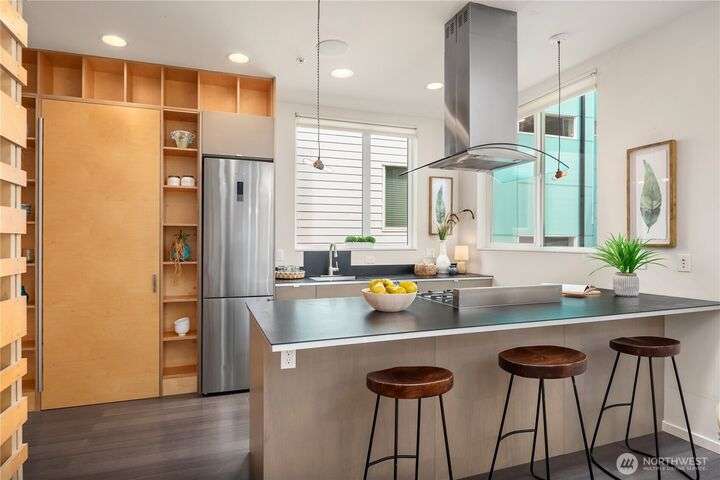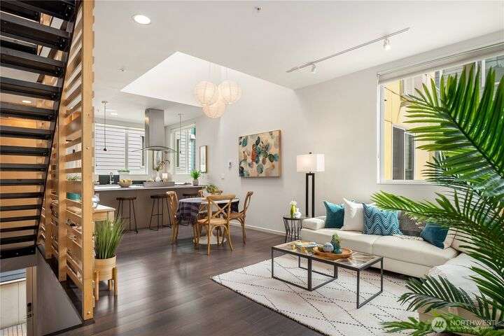 Urban sophistication meets sustainable living in the heart of Capitol Hill! This modern 2 bedroom, 1.75 bath townhome offers sleek loft-style architecture, Built Green certification and designer touches throughout. Enjoy radiant heated floors, tankless water heater, mini-split cooling, Paperstone kitchen countertops, warm wood tones and highly desirable garage parking. Soaring ceilings and open living spaces create a bright, airy vibe. Roof top deck with city views and just steps to the vibrant Pike/Pine corridor with top restaurants, cafes, shopping and great transit options. Tucked in a small, welcoming community where style meets convenience, and right in the heart of one of the city's most dynamic neighborhoods, you will love it here!