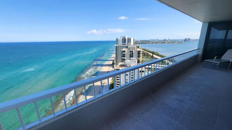 Immaculate 24th floor direct oceanfront 2 bedroom condo w/stunning views thur floor-to-ceiling sliders. Very quiet, only 4 units per floor. Large rooms, split floor plan, spacious living areas, abundant natural light. Guest room has 2 king beds. Nicely remodeled modern lobby. Community has 24 hr manned gate access, pool, tennis courts, fitness center, private beach access, shuffle board, putting green & on-site management. Desirable ocean to Intracoastal location close to PGA, Phil Foster Park, Gardens Mall, fine dining, & boutique shopping Embrace the vibrant culture & outdoor adventures making every day feel like a vacation. 1 assigned parking spot, no pets