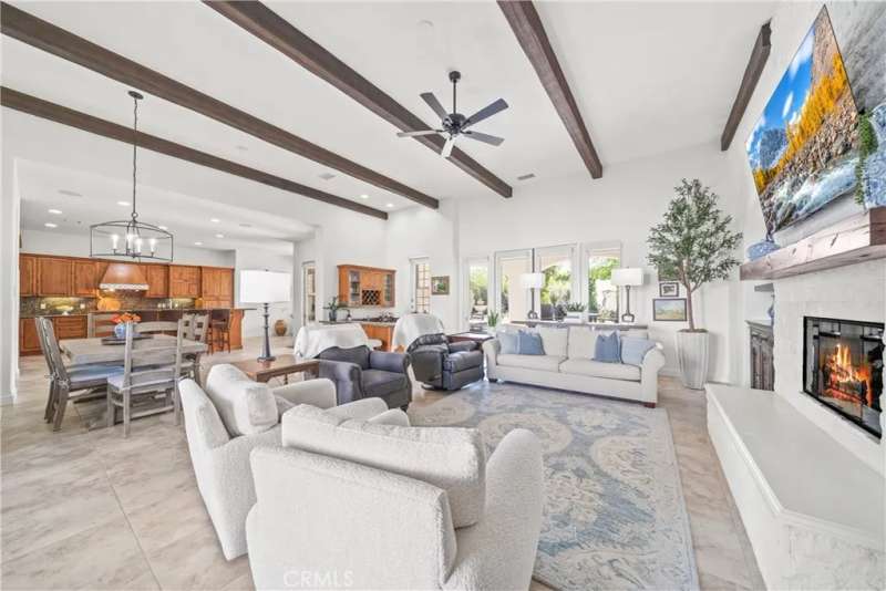 Nestled within the prestigious Norman Estates at PGA West, this meticulously maintained 3,040-square-foot home is a masterpiece of design and comfort. It offers an unparalleled lifestyle, combining modern luxury with the relaxed elegance of a resort. Every detail has been carefully considered to create a bright, airy, and inviting atmosphere, from the moment you step through the private, gated courtyard. The residence's high ceilings and thoughtfully designed open-concept layout fill every room with an abundance of natural light, creating a sense of spaciousness and tranquility. The living room serves as the heart of the home, featuring a cozy fireplace for cooler evenings and seamless access to both the front and back patios, ideal for effortless entertaining. A culinary dream, the kitchen boasts a large central island, warm wood cabinetry, and sleek granite countertops. It is equipped with top-of-the-line stainless steel appliances, including a gas cooktop, catering to the most discerning of chefs. Retreat to the secluded primary suite, which offers direct access to the serene backyard. The en-suite bathroom is a spa-like sanctuary, featuring a lavish soaking tub, a walk-in shower, dual vanities, and an expansive walk-in closet. The home includes two additional en-suite guest rooms, ensuring ultimate comfort and privacy for visitors. One is located within the main residence, while the other is a detached casita accessed from the central courtyard. The home features a very impressive custom 72 bottle wine wall for your favorite vintage. The exceptionally large backyard is