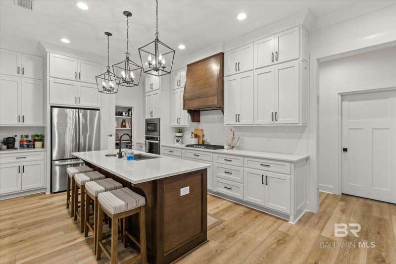 VRM: SELLER WILL ENTERTAIN OFFERS BETWEEN $695,000 - $725,000 UPPER AND LOWER RANGES. Stunning Builder's Personal Home in Highly Sought-After Saraland District! This meticulously designed 4-bedroom, 4-bathroom home offers quality, comfort, and custom touches throughout. Featuring an open-concept layout with a split-bedroom plan, this energy-efficient and well-insulated home is great for modern living. Enjoy a spacious bonus room, storm shelter, and a low-maintenance painted brick exterior. The heart of the home (kitchen) boasts custom cabinetry, a large island, and an oversized walk-in pantry?great for everyday living and entertaining. The luxurious primary suite includes a walk-in tiled shower, soaking tub, dual vanities, and a huge walk-in closet that connects conveniently to the laundry room. Outdoors, you'll find a fenced backyard, rear & front porch and a 2-car garage. With its thoughtful layout and top-quality construction, this home offers everything a discerning buyer is looking for! Buyer to verify all information during due diligence.