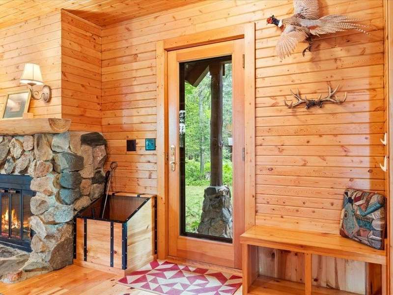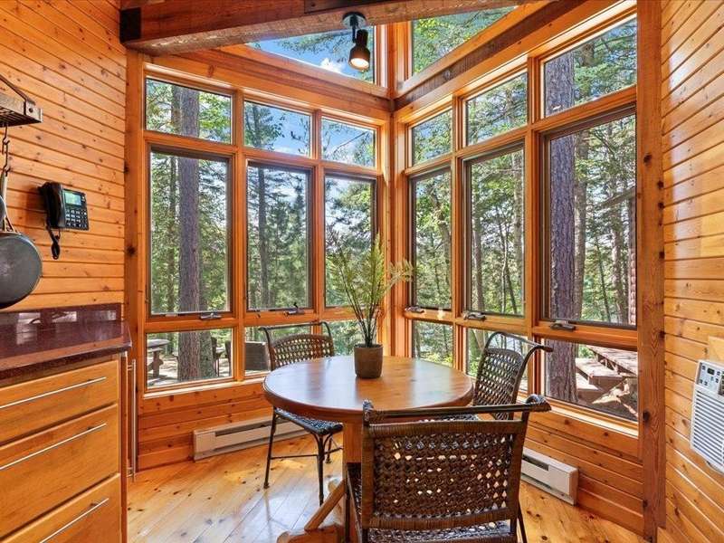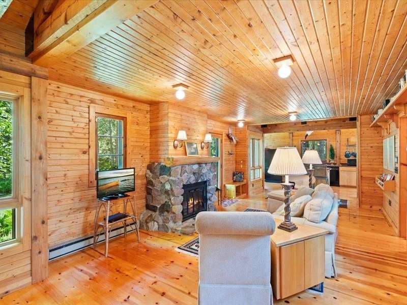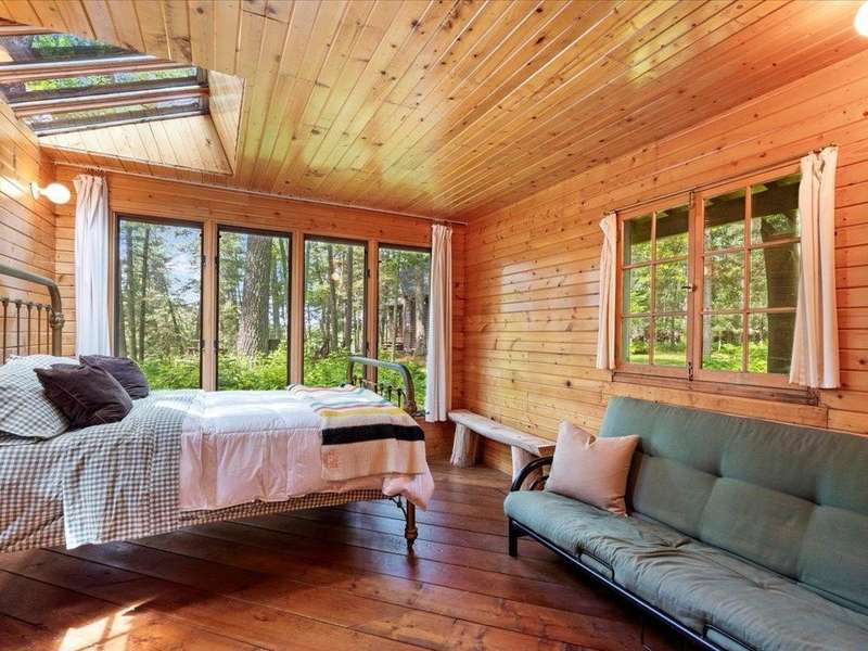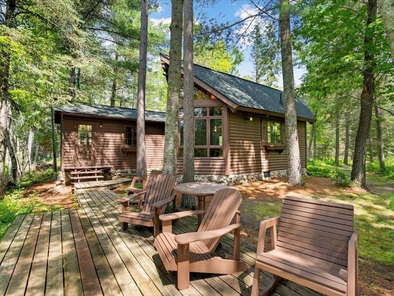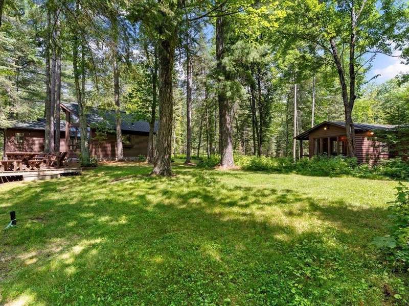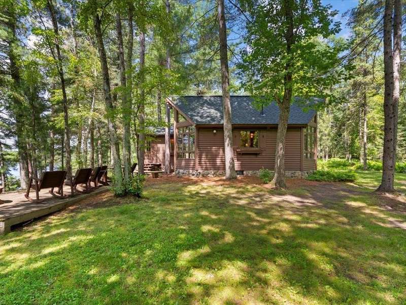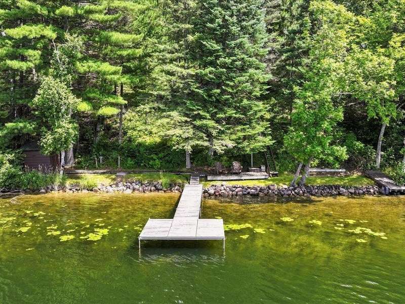 Stunning Lakefront Retreat on Roosevelt Lake – 2.9 Acres & 200' of west-facing lake frontage this property offers panoramic views, spectacular sunsets, and a peaceful setting towards the end of a quiet dead-end road. A level lakefront area with a sandy bottom makes this a perfect swimming and recreation spot. Enjoy easy access to the water with your private dock and hillside lift to the shoreline. The property is beautifully wooded with towering pines and a mix of mature trees, providing privacy and the ultimate Northwoods vibe. Main Cabin Features: 1 Bedroom / 1 Bath, Gorgeous wood beams, hardwood floors, and natural woodwork throughout, Custom kitchen with granite countertops, Woodburning fireplace adds rustic charm, Vaulted ceilings with skylights and plenty of windows for abundant sunlight, Primary bedroom offers serene views of Roosevelt Lake, Custom bathroom with tiled shower, Cozy living room and a large dining/gathering area perfect for entertaining, Custom benches and thoughtful design touches, new roof in 2025 on main cabin, Comes fully furnished, Security system included, Expansive deck space ideal for hosting guests. Guest Cabin Highlights: 2 Bedrooms / 2 – ¾ Baths (updated in 2025), Beautiful hardwood floors, Laundry room attached for convenience, newer roof, Covered porch for relaxing and enjoying the outdoors. Additional features include a carport, storage shed, and access to nearby ATV and snowmobile trails for year-round recreation. Whether you’re looking for a peaceful lakeside retreat, a multi-cabin family getaway, or a turn-key vacation rental, this property is a rare find. The layout, land, and features make it ideal for making memories for years to come. Additional adjoining lakefront land available for sale if you are looking for that impossible to find large family estate. There is also a 67.7 acre nature-lovers paradise for sale across the road, truly a once in a lifetime opportunity.