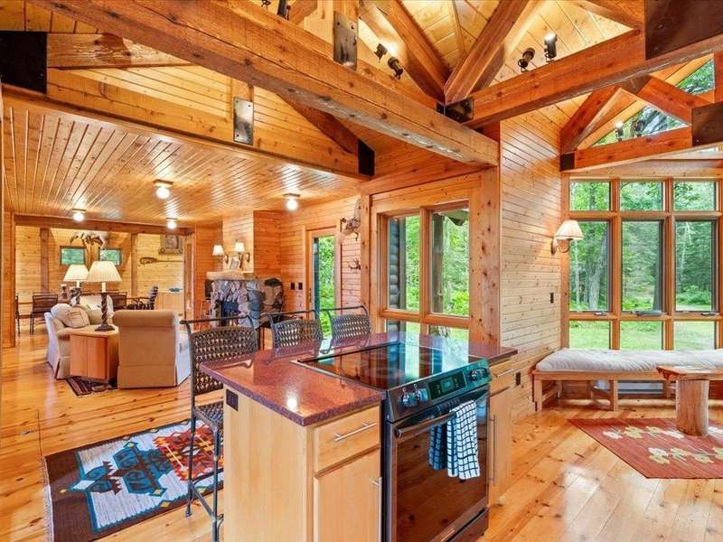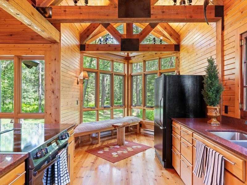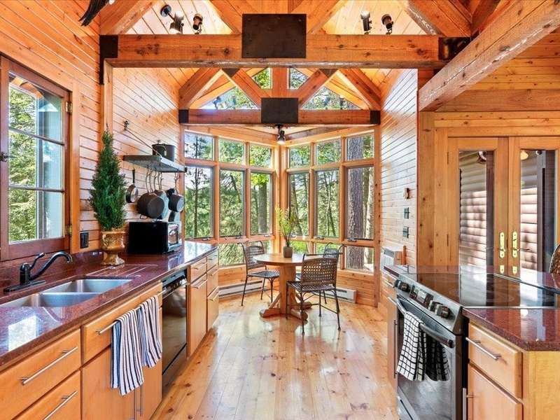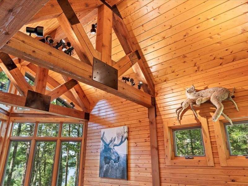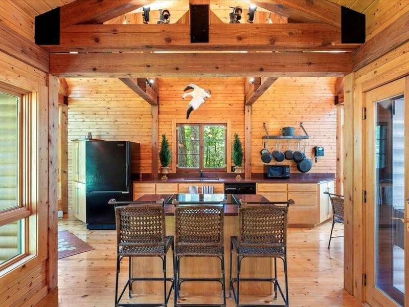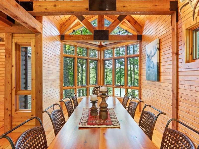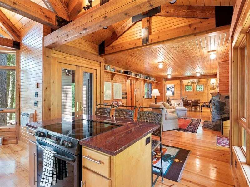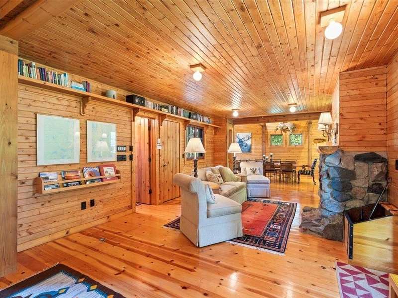 Stunning Lakefront Retreat on Roosevelt Lake – 2.9 Acres & 200' of west-facing lake frontage this property offers panoramic views, spectacular sunsets, and a peaceful setting towards the end of a quiet dead-end road. A level lakefront area with a sandy bottom makes this a perfect swimming and recreation spot. Enjoy easy access to the water with your private dock and hillside lift to the shoreline. The property is beautifully wooded with towering pines and a mix of mature trees, providing privacy and the ultimate Northwoods vibe. Main Cabin Features: 1 Bedroom / 1 Bath, Gorgeous wood beams, hardwood floors, and natural woodwork throughout, Custom kitchen with granite countertops, Woodburning fireplace adds rustic charm, Vaulted ceilings with skylights and plenty of windows for abundant sunlight, Primary bedroom offers serene views of Roosevelt Lake, Custom bathroom with tiled shower, Cozy living room and a large dining/gathering area perfect for entertaining, Custom benches and thoughtful design touches, new roof in 2025 on main cabin, Comes fully furnished, Security system included, Expansive deck space ideal for hosting guests. Guest Cabin Highlights: 2 Bedrooms / 2 – ¾ Baths (updated in 2025), Beautiful hardwood floors, Laundry room attached for convenience, newer roof, Covered porch for relaxing and enjoying the outdoors. Additional features include a carport, storage shed, and access to nearby ATV and snowmobile trails for year-round recreation. Whether you’re looking for a peaceful lakeside retreat, a multi-cabin family getaway, or a turn-key vacation rental, this property is a rare find. The layout, land, and features make it ideal for making memories for years to come. Additional adjoining lakefront land available for sale if you are looking for that impossible to find large family estate. There is also a 67.7 acre nature-lovers paradise for sale across the road, truly a once in a lifetime opportunity.