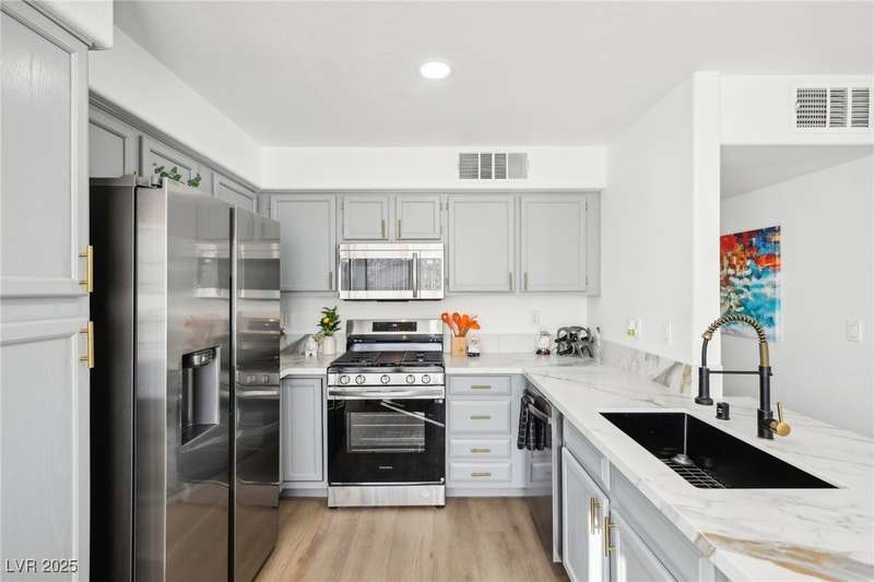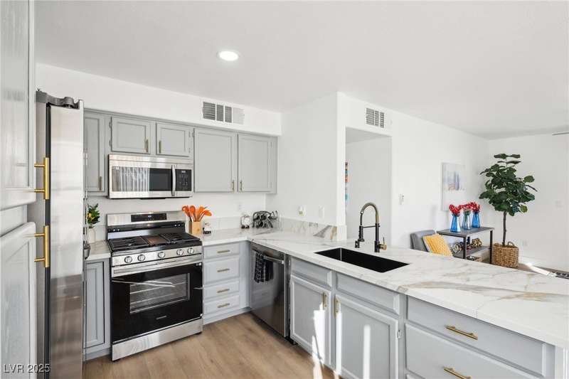 THIS IS THE ONE - PRICED TO SELL!! Centrally Located! Welcome to your dream condo in a beautifully maintained, 55+, GATED community! This re-imagined RARE 3-bed, 2-bath gem offers modern luxury & comfort. Open concept living area w/natural light, updated flooring, stylish fixtures & a fresh contemporary design. Spacious kitchen boasts Quartz countertops, Samsung SS appliances & plenty of storage, perfect for any home Chef. Primary bedroom is a true retreat with an en-suite bathroom, providing a serene space to unwind. 2 additional bedrooms offer generous space for family, guests, or a home office. Outside, the community provides a resort-style pool, fitness center & lushly landscaped grounds where you can enjoy endless relaxation & recreation. Perfectly located near shopping, dining & easy access to major freeways, this condo offers the best of convenience & style. SELLER OFFERING $3,000 CLOSING COST CREDIT PLUS 6 MONTHS PRE-PAID TAXES AND HOA DUES.