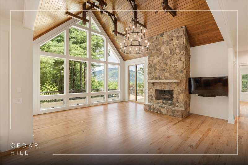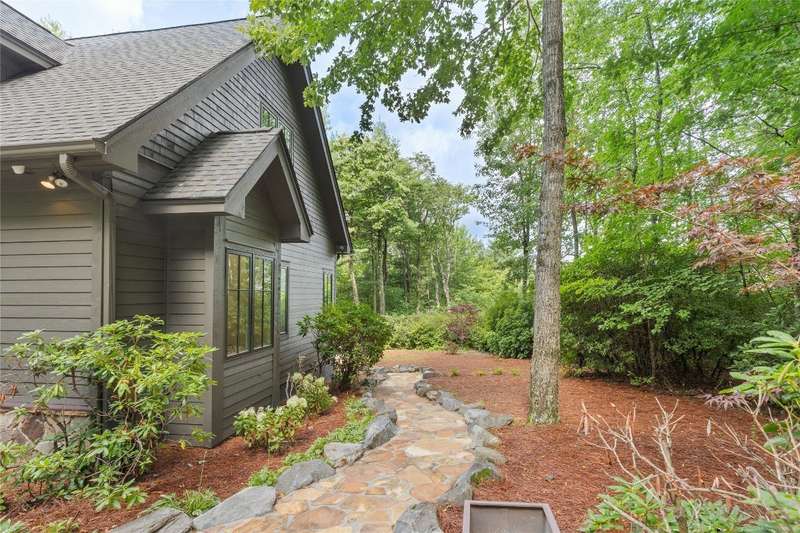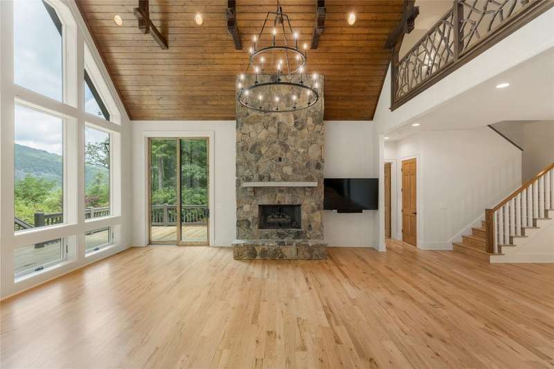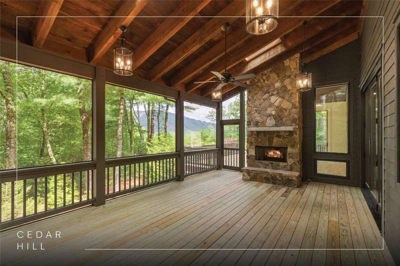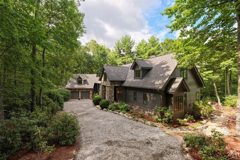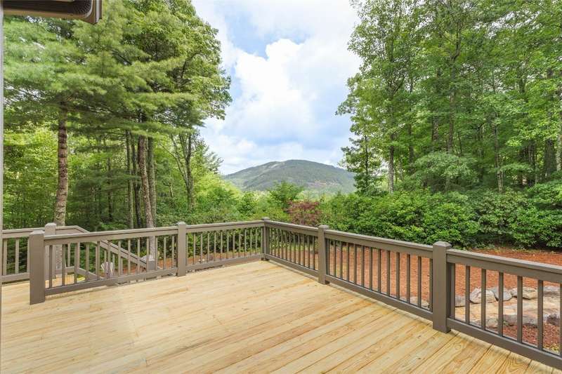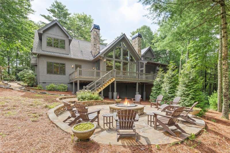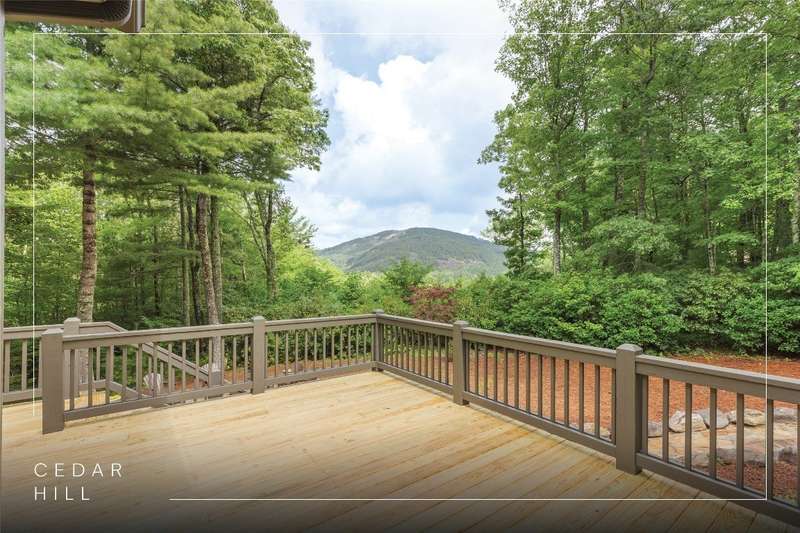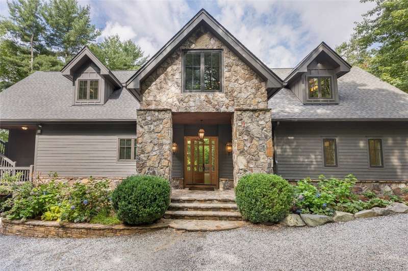 First Time Offering in Cedar Hill - Newly Renovated Luxury with Big Sheepcliff Views Nestled within the prestigious gated community of Cedar Hill, just moments from the fine dining, boutique shopping, and recreational offerings of both Cashiers and Sapphire, this exceptional mountain home is being presented for the first time since undergoing a comprehensive and thoughtful renovation. A sweeping circular driveway welcomes you and your guests, offering an immediate sense of arrival and privacy. Step inside to find a dramatic two-story great room featuring a soaring stone fireplace and a wall of glass that captures breathtaking views of Big Sheepcliff Mountain. Natural light floods the space, creating a warm and inviting ambiance that flows effortlessly into the adjacent dining area and brand-new chef's kitchen. Designed with entertaining and everyday living in mind, the kitchen features a large central island with additional casual seating, custom cabinetry, and top-of-the-line finishes. A full wall of windows and folding glass doors open seamlessly to a covered porch with a second stone fireplace perfect for enjoying cool mountain evenings or hosting intimate gatherings year-round. Just below, the gently sloping topography of the lot leads to a thoughtfully placed firepit area, offering yet another space to relax and connect under the stars. The main-level primary suite serves as a true retreat, complete with a fully updated bath that boasts a large walk-in shower, elegant stonework, and luxurious finishes. A cozy den with a full bath provides flexibility for additional guests or a home office, while the conveniently located laundry room enhances main-level living. Upstairs, an open loft overlooks the great room and serves as a central hub between two generously sized guest suites, each with its own private ensuite bath, ideal for family and friends. Tucked above the garage, the spacious media room offers a private escape, perfect for movie nights, quiet reading, or working remotely. Impeccably remodeled and move-in ready, this elegant mountain home is the perfect blend of comfort, luxury, and timeless design all set within one of the Highlands-Cashiers Plateau's most sought-after communities.
