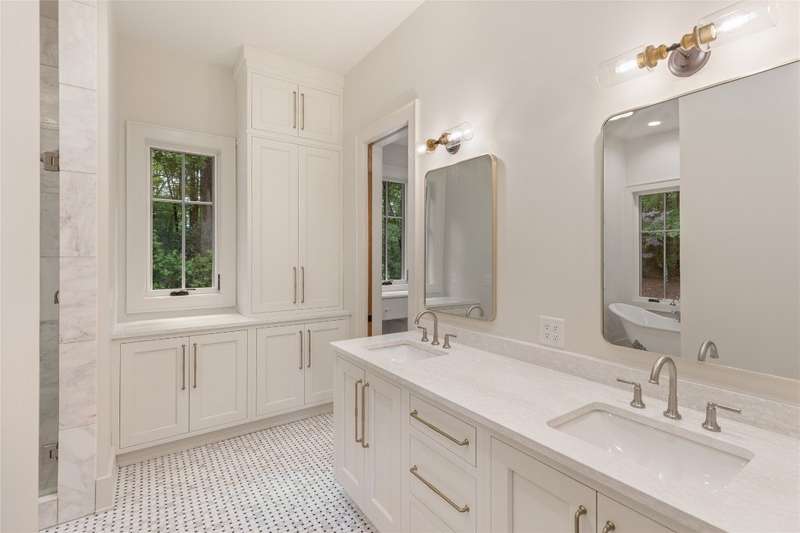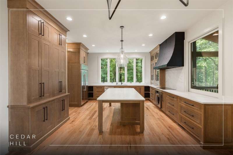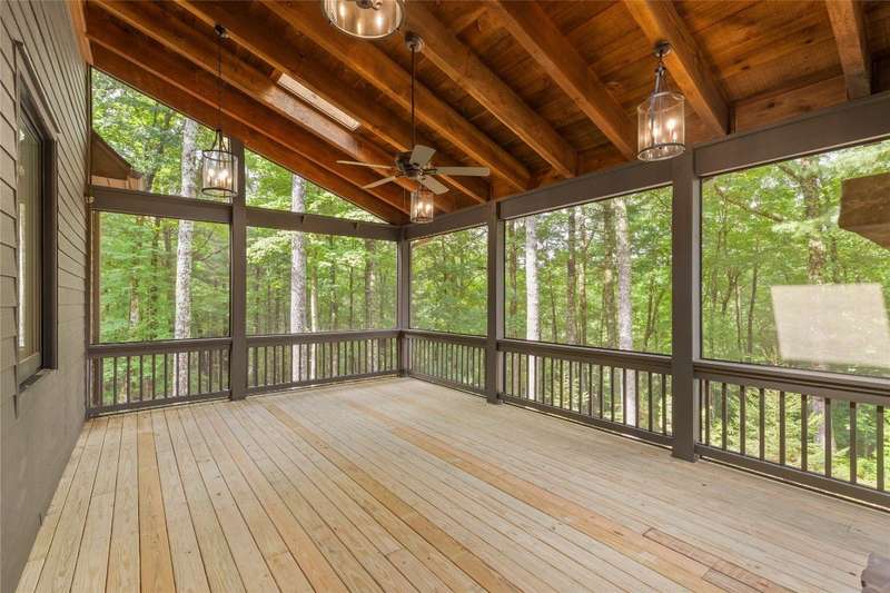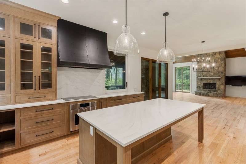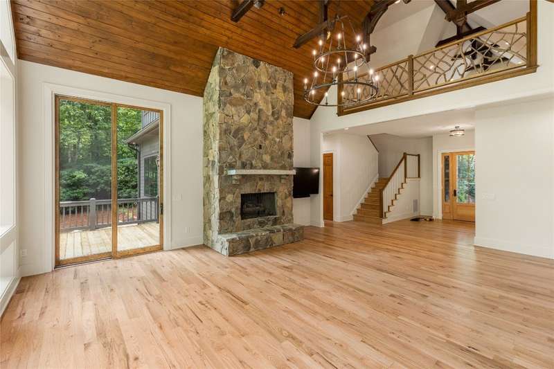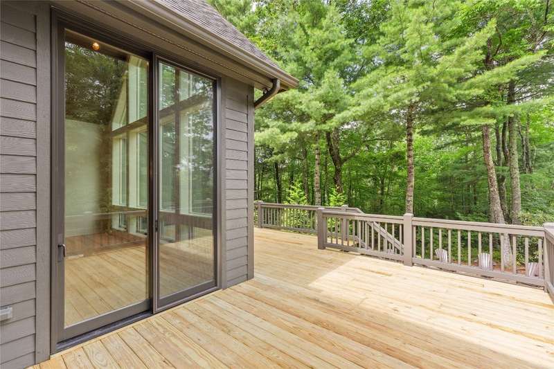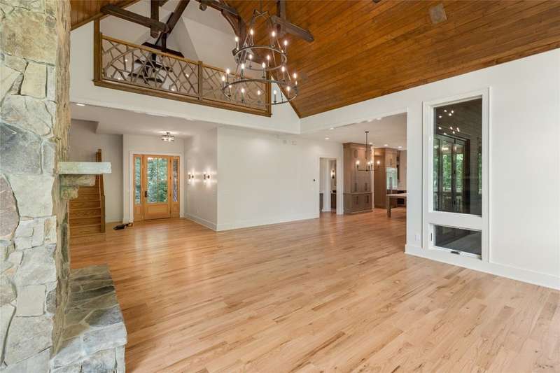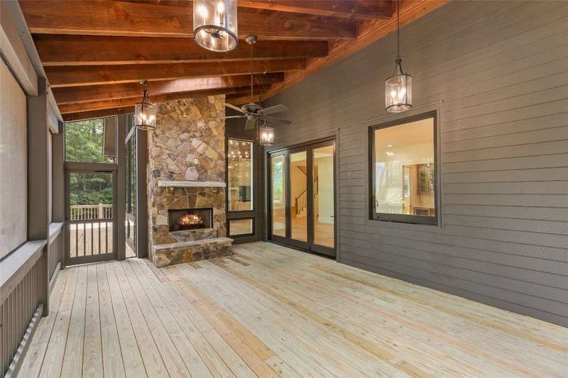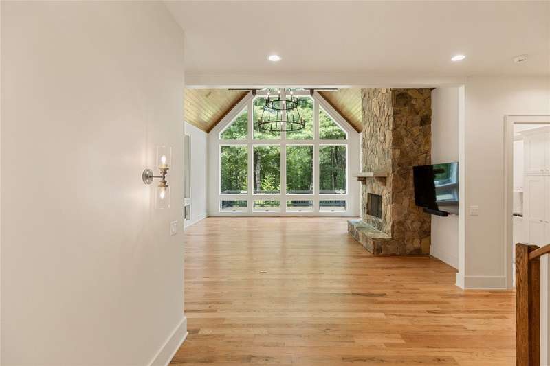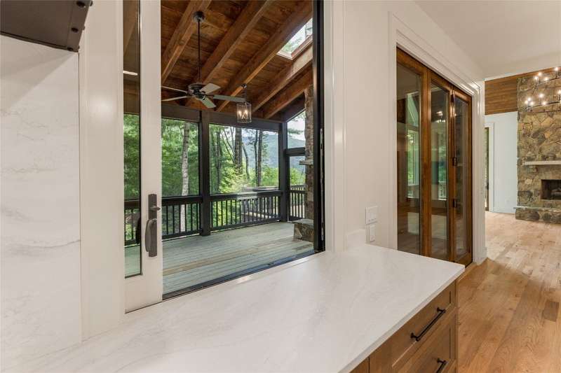 First Time Offering in Cedar Hill - Newly Renovated Luxury with Big Sheepcliff Views Nestled within the prestigious gated community of Cedar Hill, just moments from the fine dining, boutique shopping, and recreational offerings of both Cashiers and Sapphire, this exceptional mountain home is being presented for the first time since undergoing a comprehensive and thoughtful renovation. A sweeping circular driveway welcomes you and your guests, offering an immediate sense of arrival and privacy. Step inside to find a dramatic two-story great room featuring a soaring stone fireplace and a wall of glass that captures breathtaking views of Big Sheepcliff Mountain. Natural light floods the space, creating a warm and inviting ambiance that flows effortlessly into the adjacent dining area and brand-new chef's kitchen. Designed with entertaining and everyday living in mind, the kitchen features a large central island with additional casual seating, custom cabinetry, and top-of-the-line finishes. A full wall of windows and folding glass doors open seamlessly to a covered porch with a second stone fireplace perfect for enjoying cool mountain evenings or hosting intimate gatherings year-round. Just below, the gently sloping topography of the lot leads to a thoughtfully placed firepit area, offering yet another space to relax and connect under the stars. The main-level primary suite serves as a true retreat, complete with a fully updated bath that boasts a large walk-in shower, elegant stonework, and luxurious finishes. A cozy den with a full bath provides flexibility for additional guests or a home office, while the conveniently located laundry room enhances main-level living. Upstairs, an open loft overlooks the great room and serves as a central hub between two generously sized guest suites, each with its own private ensuite bath, ideal for family and friends. Tucked above the garage, the spacious media room offers a private escape, perfect for movie nights, quiet reading, or working remotely. Impeccably remodeled and move-in ready, this elegant mountain home is the perfect blend of comfort, luxury, and timeless design all set within one of the Highlands-Cashiers Plateau's most sought-after communities.