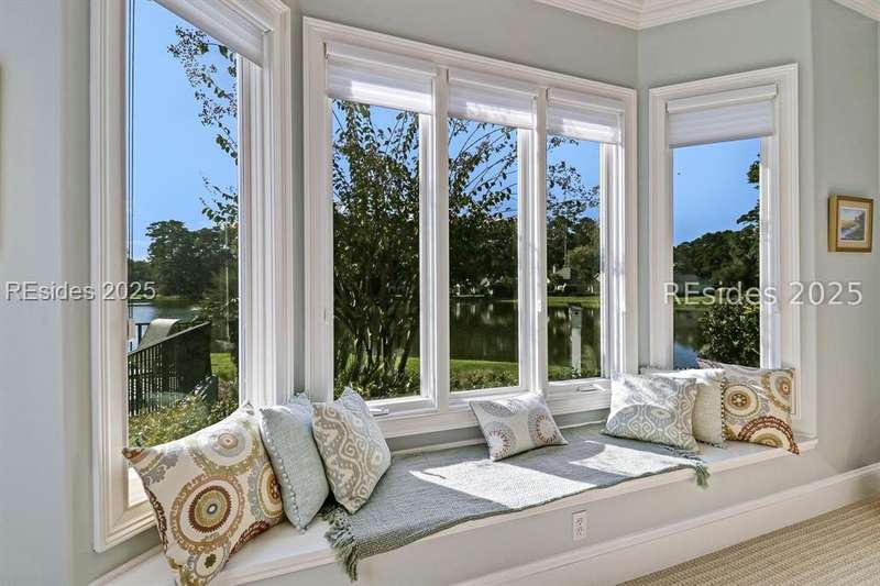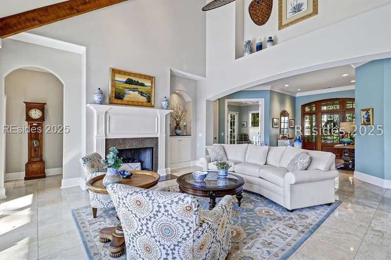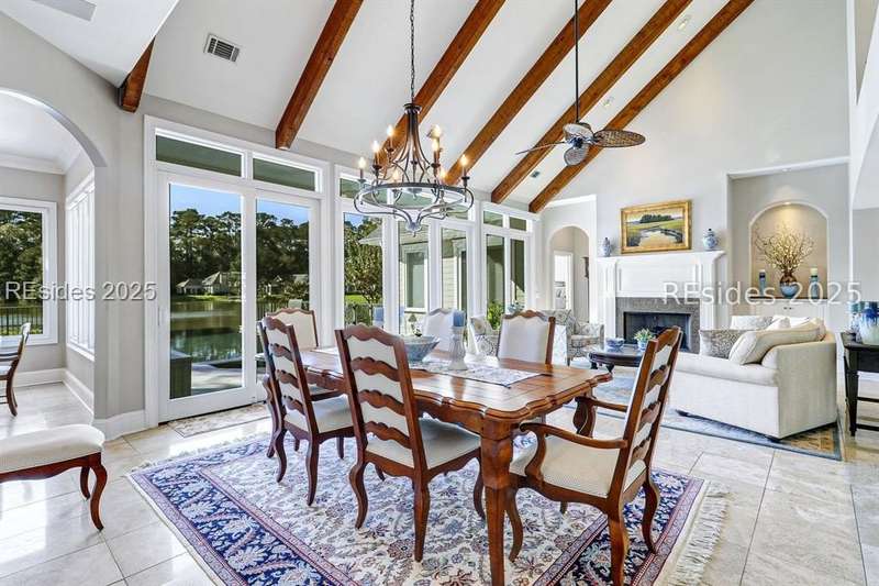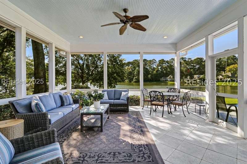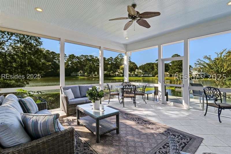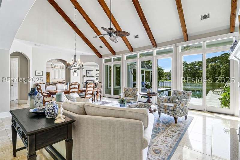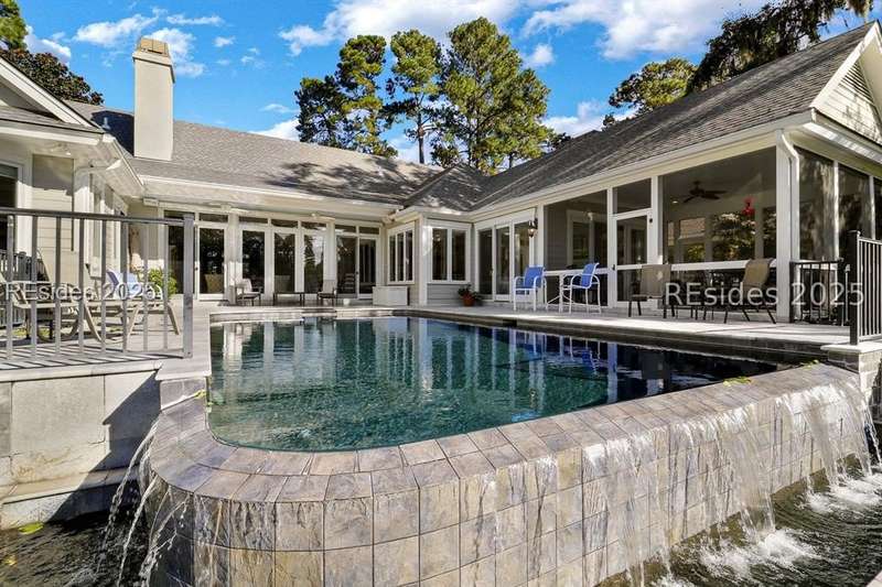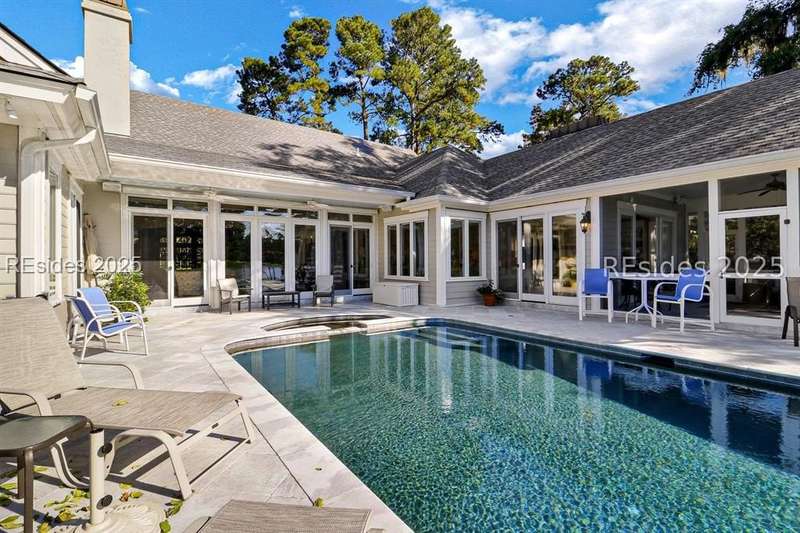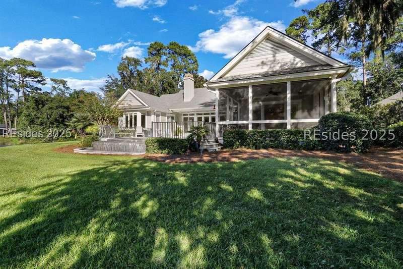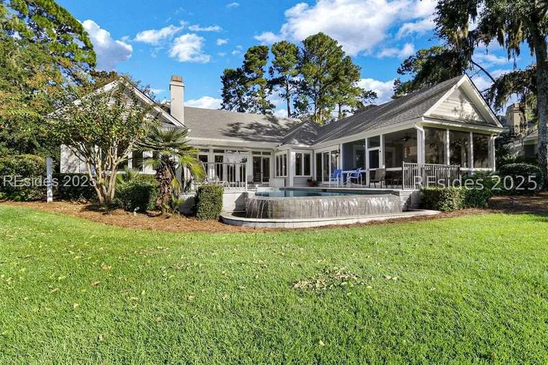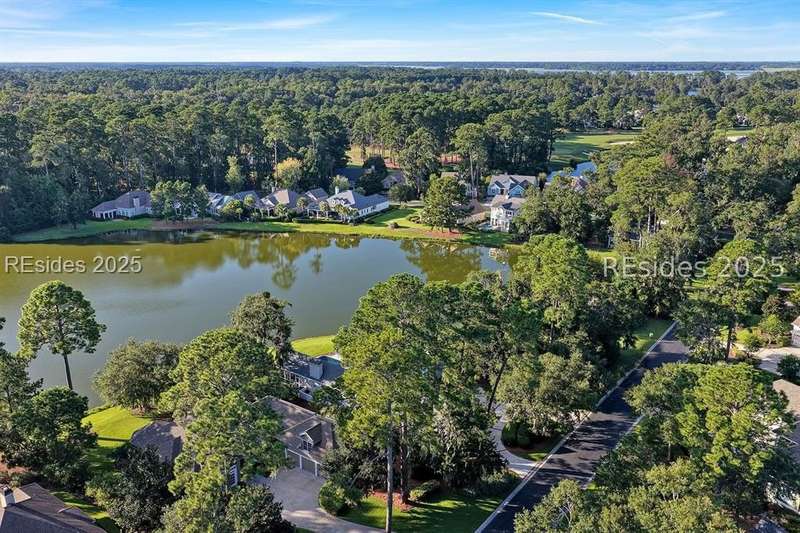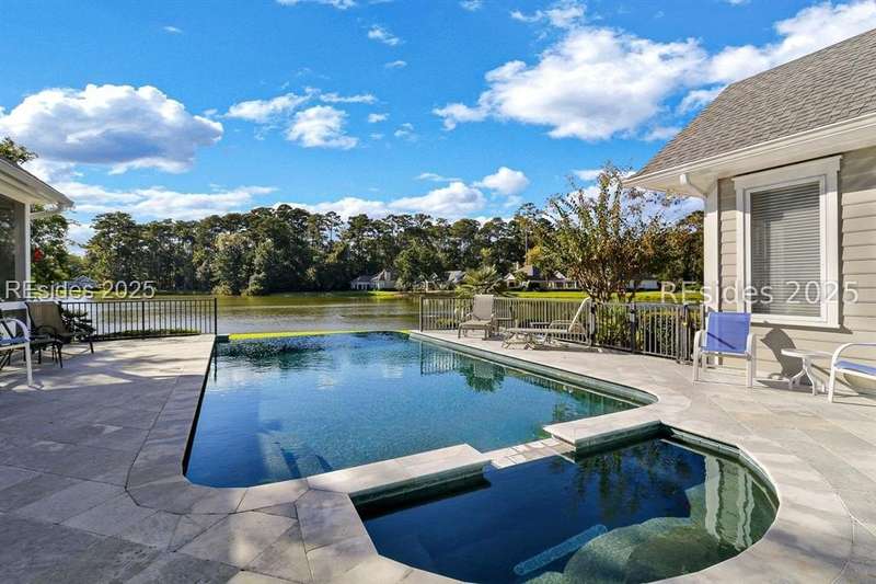 Arriving at 42 Lexington in Belfair you will see that the hardiplank home bursts with Low Country charm. A circular tabby driveway surrounded by lush mature landscaping brings one to the Southern exterior of the home. Upon entering you begin your peaceful and calm journey of being "home". The infinity edge pool appears to flow right into Hickory Lake creating a feeling of serenity. This 4 bedroom 4 bath home has plenty of room for expansion in the large bonus room over the garage to create another bedroom if needed allowing one of the 4 bedrooms on the first floor to be an office. Primary bathroom update has just been completed. The living/dining room open concept features a soaring beamed ceiling filled with light. Off the kitchen/great room is a screen porch. Gourmet kitchen with Wolf oven/stove, Sub Zero refrigerator. The home is perfect for entertaining friends and family whether a pool party, BBQ dinner, cocktail party or just spending quiet time with yourself and loved ones. You will not be disappointed viewing this home and considering it for your own.