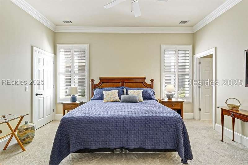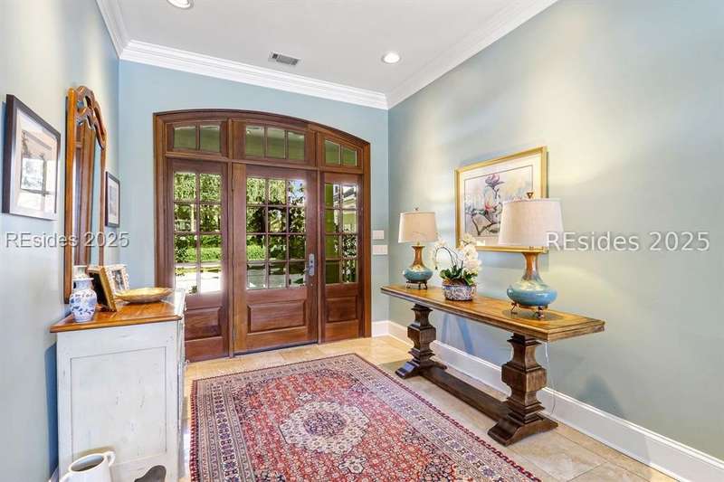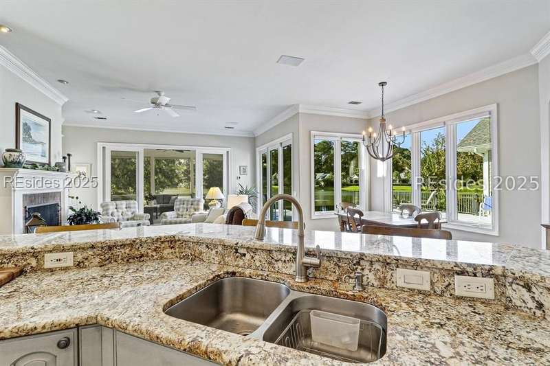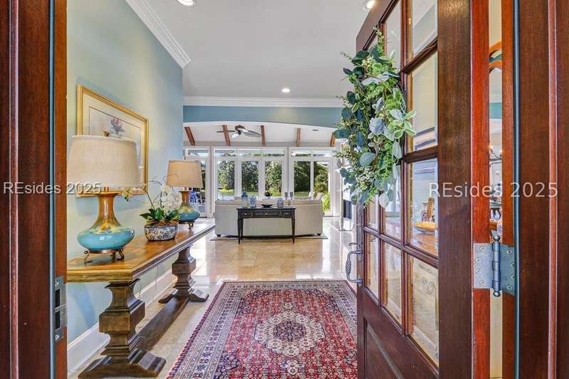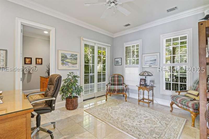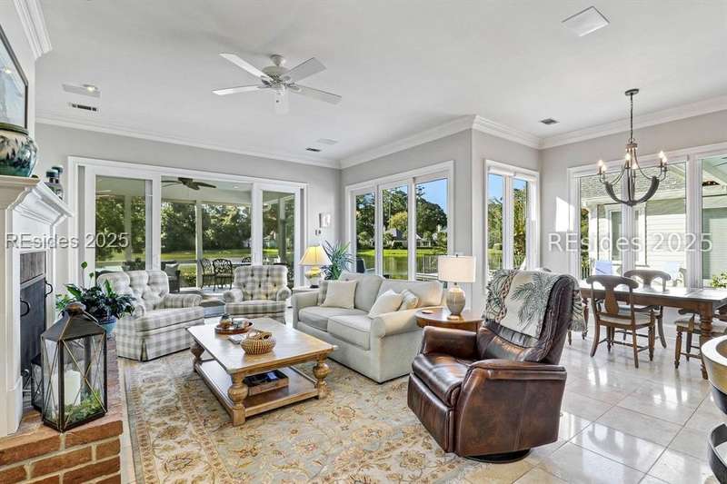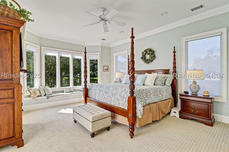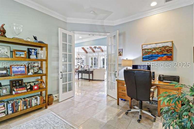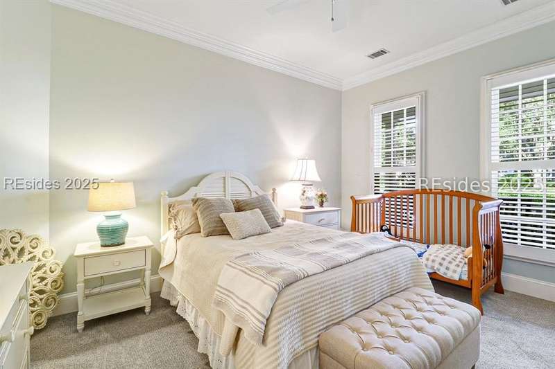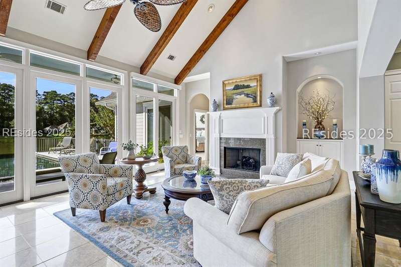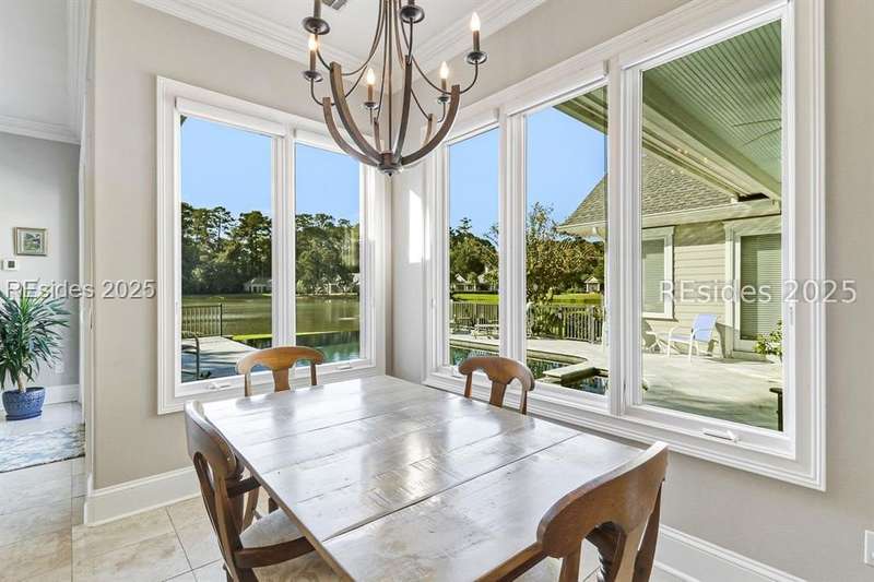 Arriving at 42 Lexington in Belfair you will see that the hardiplank home bursts with Low Country charm. A circular tabby driveway surrounded by lush mature landscaping brings one to the Southern exterior of the home. Upon entering you begin your peaceful and calm journey of being "home". The infinity edge pool appears to flow right into Hickory Lake creating a feeling of serenity. This 4 bedroom 4 bath home has plenty of room for expansion in the large bonus room over the garage to create another bedroom if needed allowing one of the 4 bedrooms on the first floor to be an office. Primary bathroom update has just been completed. The living/dining room open concept features a soaring beamed ceiling filled with light. Off the kitchen/great room is a screen porch. Gourmet kitchen with Wolf oven/stove, Sub Zero refrigerator. The home is perfect for entertaining friends and family whether a pool party, BBQ dinner, cocktail party or just spending quiet time with yourself and loved ones. You will not be disappointed viewing this home and considering it for your own.