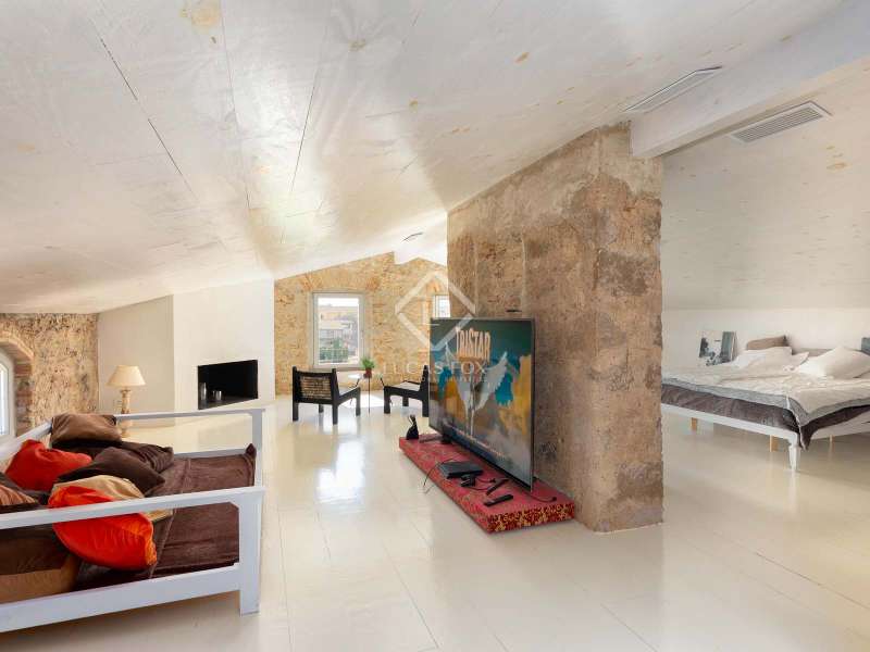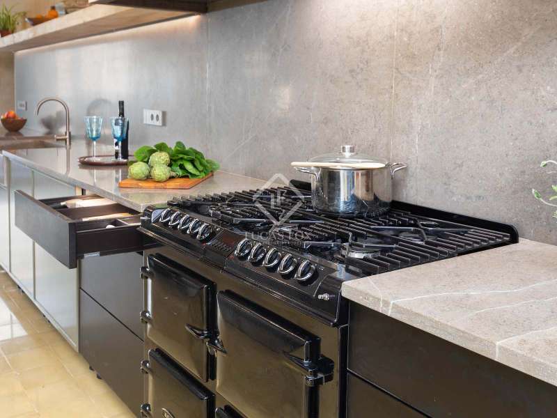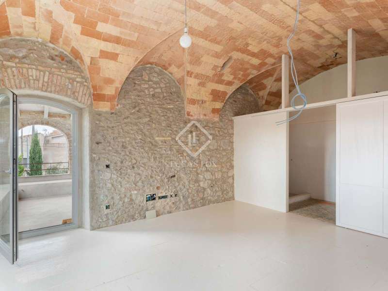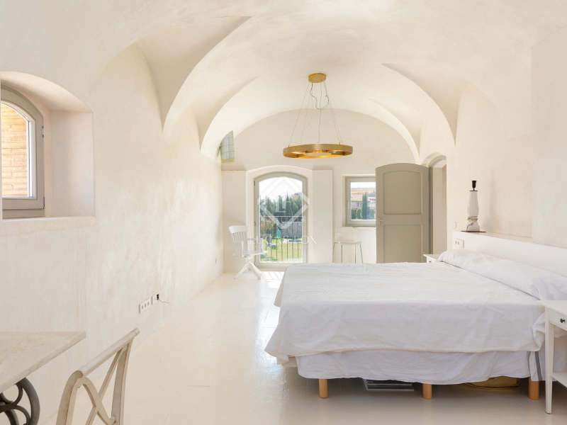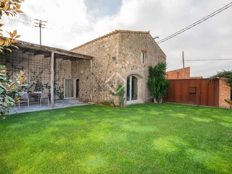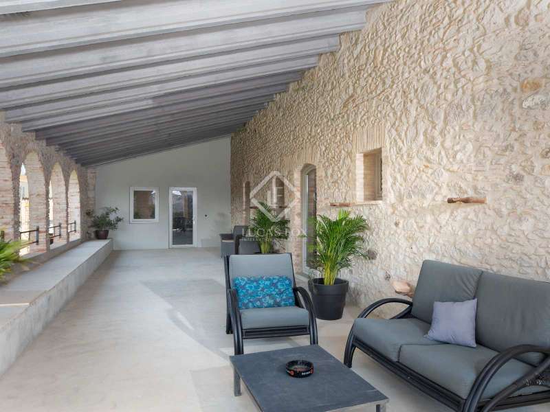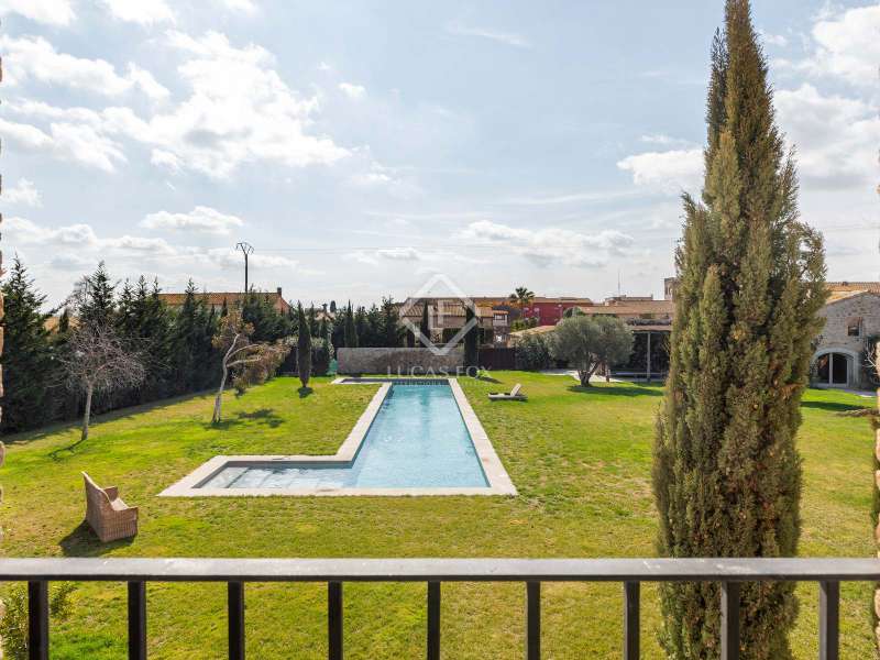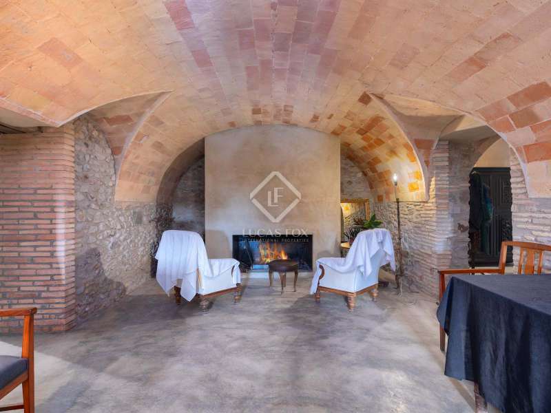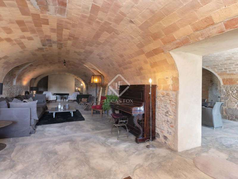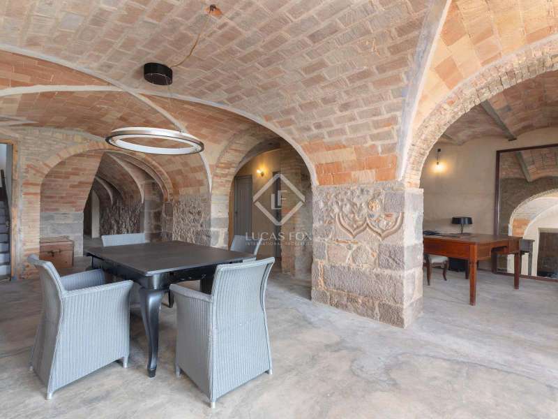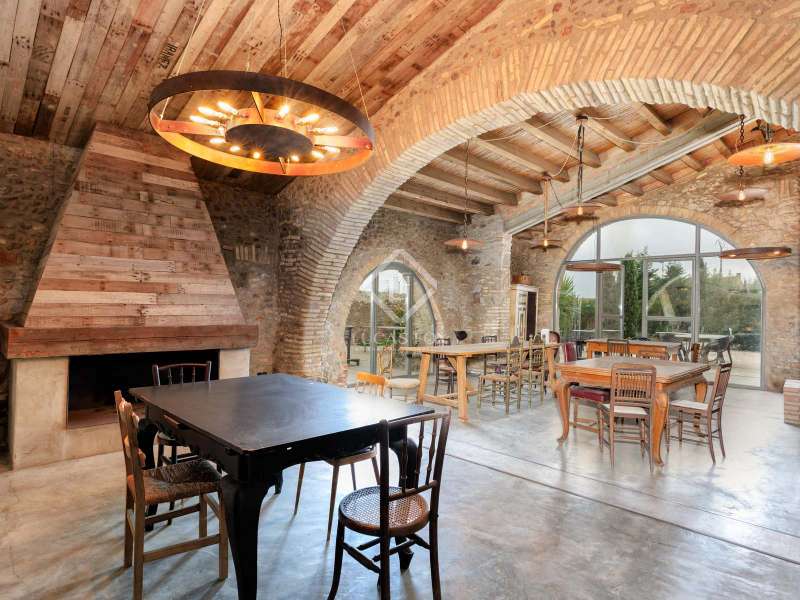 Fabulous 18th century farmhouse in final process of restoration and decoration, located in a small and quiet village of Alt Empordà, a few kilometres from the beach. The property is located on the edge of the town centre and consists of 3.774 m² of land, with garden and 25 m swimming pool with integrated jacuzzi. Fenced with iron gates and trees of more than 5m which give it great privacy. The main farmhouse measures 1,075 m² distributed over three floors, with stone walls and original vaulted ceilings on two of them. The ground floor has a fabulous entrance where we find the coat of arms of the house, an incredible indoor living-dining room with fireplace, billiard room, wine cellar, toilets, designer kitchen equipped with high-end appliances with direct access to the outside. An old barn that has been restored and recovered is converted into another living-dining room with stone arch and access to an outdoor space of 200 m² with terrace, kitchen, barbecue and chill out area. On the ground floor there are also two double bedrooms with bathroom and access to the garden. The whole floor has concrete floors. On the first floor there is a central hall and six en-suite bedrooms, three of which open onto a covered arched terrace of 80 m². The entire floor maintains its vaulted ceilings and majestic stone walls. The floors of the bathrooms are made of old and exquisite reclaimed hydraulic tiles and the rest of the floor is made of cement. The third floor is distributed in two large suites of 70 m², each with private bathroom, sitting room and fireplace. All in white wood combined with stone. The restoration has been carried out with the utmost care in terms of the quality of the materials and finishes. At one end of the garden, there is a beautiful stone shed, currently prepared to be converted into a two-storey house with two or three bedrooms and an attached garage of 70 m². The land also has a space of 290 m² for a garage, storage or utility area, as well as a vegetable garden and a drinking water well.