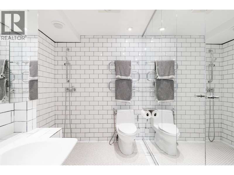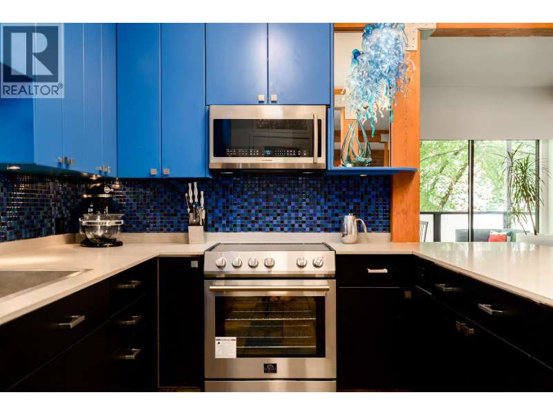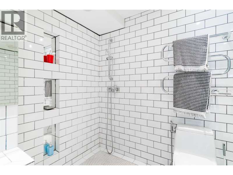 This one-of-a-kind vibrant urban retreat on coveted, tree-lined Nelson Street offers a rare blend of character & style in the heart of the West End. Spanning 1,308 sqft this corner home was originally a 3 bed/2 bath & has been transformed into a spacious 1 bed/2 bath sanctuary with in-suite laundry & the option to revert. Striking exposed wood beams, rich brick feature walls, and slate floors set an unforgettable tone. The chef´s kitchen boasts bold cabinetry, stone counters, & a generous space perfect for entertaining, while the open-concept layout flows seamlessly into the living & dining areas. Complete with 2 parking spots, this private oasis is just steps to beaches, shops, cafes and the best of DT living. (id:58403)