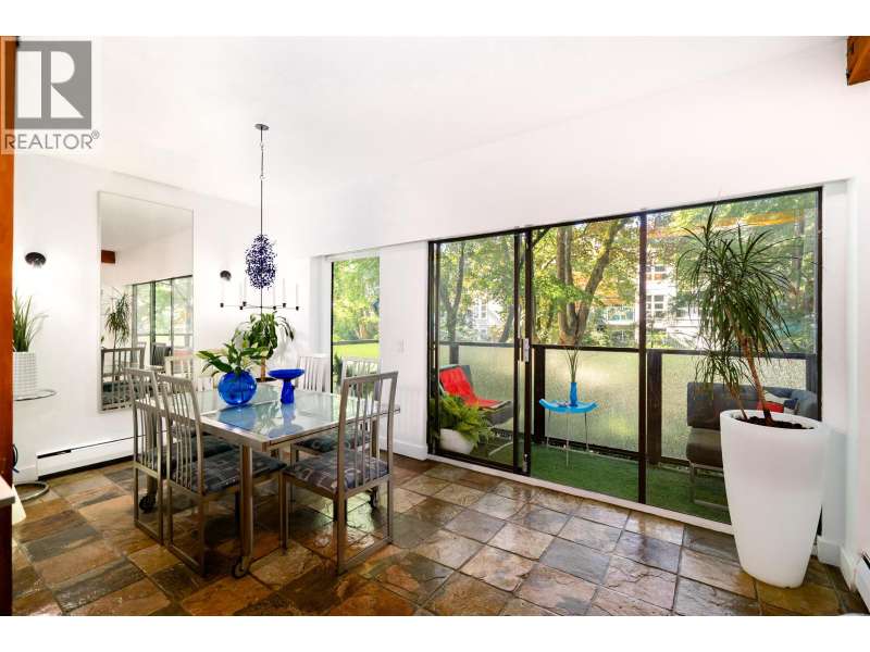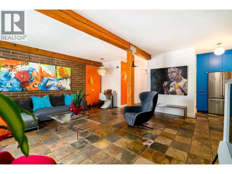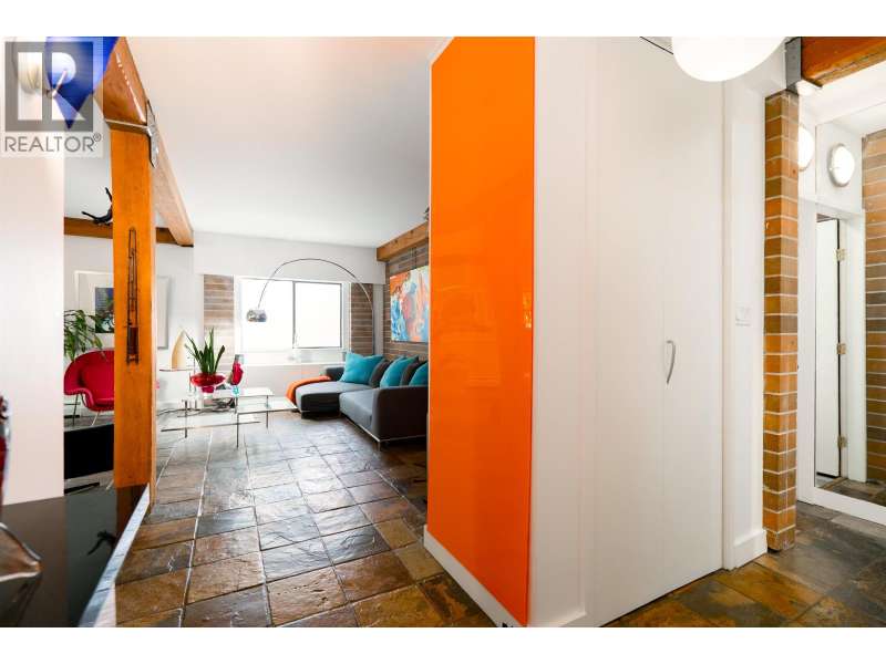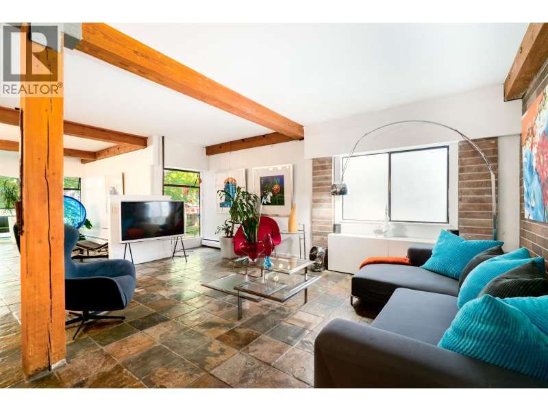 This one-of-a-kind vibrant urban retreat on coveted, tree-lined Nelson Street offers a rare blend of character & style in the heart of the West End. Spanning 1,308 sqft this corner home was originally a 3 bed/2 bath & has been transformed into a spacious 1 bed/2 bath sanctuary with in-suite laundry & the option to revert. Striking exposed wood beams, rich brick feature walls, and slate floors set an unforgettable tone. The chef´s kitchen boasts bold cabinetry, stone counters, & a generous space perfect for entertaining, while the open-concept layout flows seamlessly into the living & dining areas. Complete with 2 parking spots, this private oasis is just steps to beaches, shops, cafes and the best of DT living.Open House Nov 15 Sat 1-3pm (id:58403)