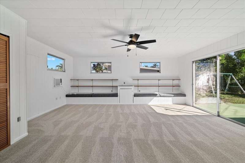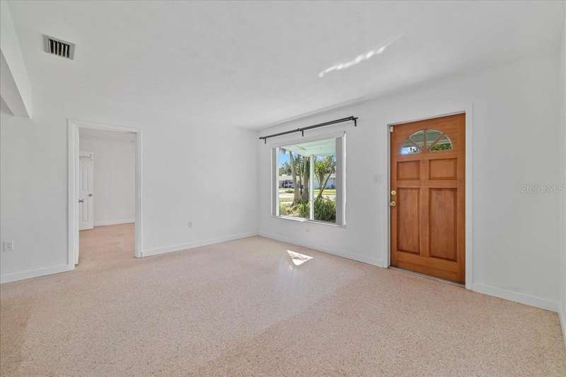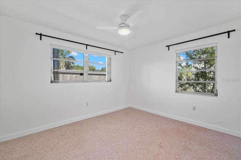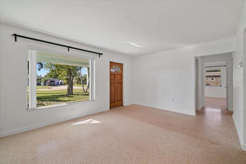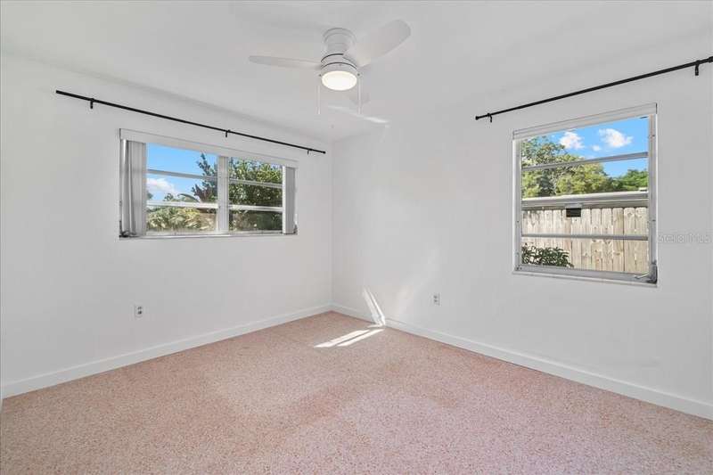 Come home to this classic mid-century ranch just off Fort Myers' beautiful palm lined McGregor Boulevard. Recently refreshed and move-in ready, this four bedroom two bathroom concrete block home offers south Florida charm conveniently located near the best dining, shopping and entertainment options of downtown. Stepping into the light filled living room, you'll immediately notice the restored original coral colored terrazzo that continues through the dining room and kitchen, as well as the four bedrooms and hall bathroom. The split floor plan features a spacious primary suite on one side and three bedrooms and a bathroom on the other. At the back of the house, you will find a massive den with room for many uses and access to the patio and gorgeous fenced back yard. A breeze block walled courtyard adds 1950's flair and more outdoor space to enjoy. There's a 50 amp outlet to power a large RV. Recent updates include a new metal roof in 2021, new plumbing supply and drain lines in 2024, fresh paint inside and out, and brand new den carpeting. Call today to see this stunning home for yourself!