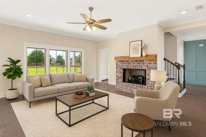 New and Ready! Welcome to the Rosewood plan, a beautifully crafted home by Tower Homes designed for comfort, convenience, and style. Located in Austin Park, this stunning two-story floor plan features 4 spacious bedrooms and 3.5 bathrooms. As you step through the covered front porch, you're greeted by a welcoming entryway that flows seamlessly into the open-concept living area, complete with a cozy gas fireplace. The dining area is adjacent to the living area and kitchen, providing an inviting space for gatherings and everyday meals. The chef's kitchen is a true highlight, boasting a large pantry, a central island, quartz countertops, and stainless steel appliances, including a gas range, range hood, dishwasher, and built-in microwave. The first-floor primary suite serves as a private retreat, featuring a walk-in closet, a private water closet, a luxurious walk-in shower, and a large soaking tub. A half bath, laundry room, and convenient drop area provide direct access to the two-car garage, completing the main level. Outside, you can enjoy a large corner lot from the oversized covered porch, accessible from the dining and living areas. Upstairs, you'll find 3 additional bedrooms, each with ample closet space. Bedroom 2 is a true suite, including an ensuite full bath and a walk-in closet. With stylishly designed finishes and well-planned storage solutions, this plan offers the perfect blend of functionality and charm. The established subdivision includes a neighborhood pool, playground, pond, and tennis/racketball courts. Gold Fortified, this home includes a one-year builder warranty, a ten-year structural PWSC warranty, and a one-year renewable repair/replacement termite bond with Formosan coverage. One or more principals of the selling entity are licensed real estate agents in the State of Alabama. Floor plans are for example only. Some rooms are virtually staged. Buyer to verify all information during due diligence.