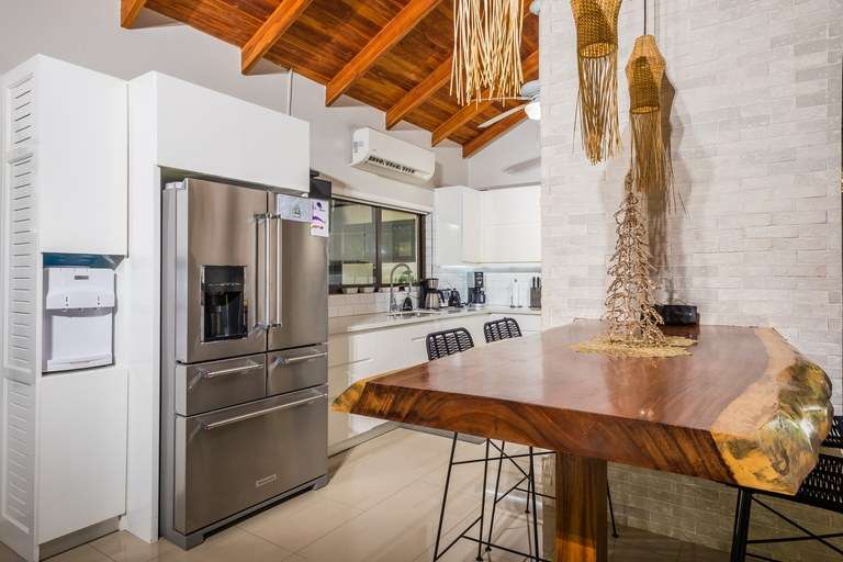 - Private 30 m2 gym, three storage rooms, parking for six vehicles, and a 5000-liter water reserve. Multiple 55-inch TVs and a cozy outdoor fire pit add to its appeal. Fully Furnished.