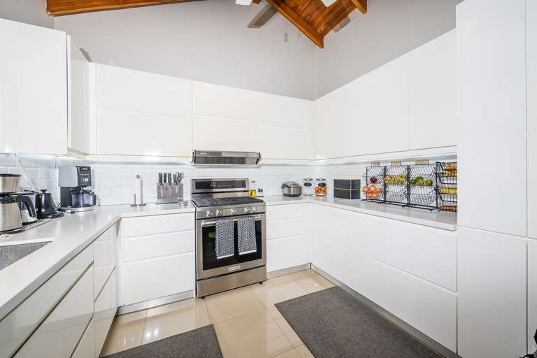 Offers a king bed with a premium mattress, a private bathroom, and a kitchen.