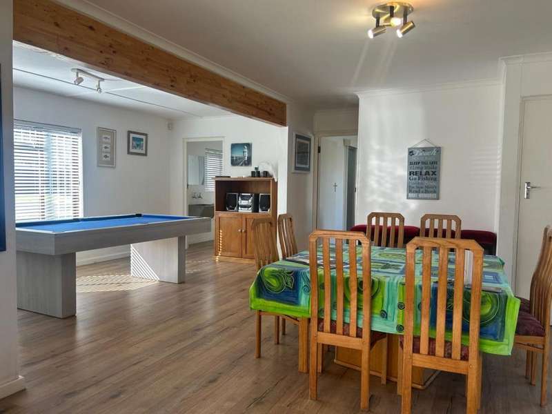Welcome to this charming property nestled on the scenic western side of Sandbaai, just a short stroll from the beach. Blending modern comfort with rustic charm, this home offers a tranquil retreat with some mountain views. Upon entering, you?ÇÖre welcomed into expansive living and dining areas that flow effortlessly into a spacious braai/playroom?Çöperfect for hosting and entertaining. The open-plan design fosters a warm, inviting ambiance ideal for gatherings with family and friends. The ground floor features a generously sized bedroom with a luxurious ensuite bathroom. Sliding doors open onto a private patio, creating a peaceful outdoor haven for relaxation. Upstairs, the rustic-style kitchen is fully equipped to inspire your inner chef. Adjacent is a cozy lounge that opens onto a sunny patio and deck, offering stunning mountain vistas?Çöperfect for enjoying your morning coffee or a sunset glass of wine. The upper level also includes two well-appointed bedrooms, each designed with comfort and privacy in mind. A spacious full bathroom serves this level, ensuring modern convenience for family and guests alike. Whether you're seeking a permanent residence, holiday home, or investment opportunity, this property offers coastal living at its finest.