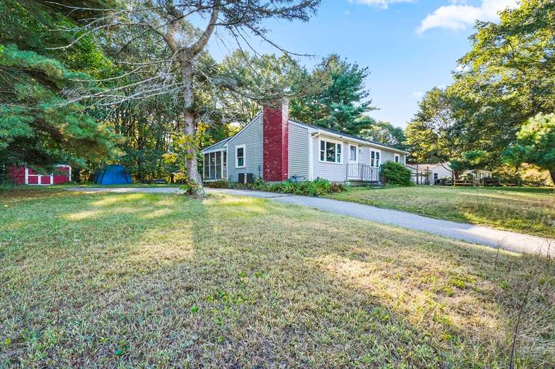 Welcome to this charming ranch-style home! The inviting living room features a cozy fireplace and a bay window that fills the space with natural light. The spacious kitchen is equipped with stainless steel appliances, ample countertop space, and an adjacent dining area with direct access to the covered back porch—perfect for seamless indoor/outdoor entertaining. Down the hall, you’ll find three bedrooms, each with hardwood floors, along with a full bath. The partially finished lower level with a versatile bonus room, offering endless possibilities for a family room, home office, or hobby space. Head outside to relax on the covered back porch overlooking the tree-lined backyard with a storage shed. Moments to Littleton schools! Tucked away in a quiet setting yet just minutes from Route 495, this home is truly a commuter’s dream! Don' miss your chance to make this house YOUR home!